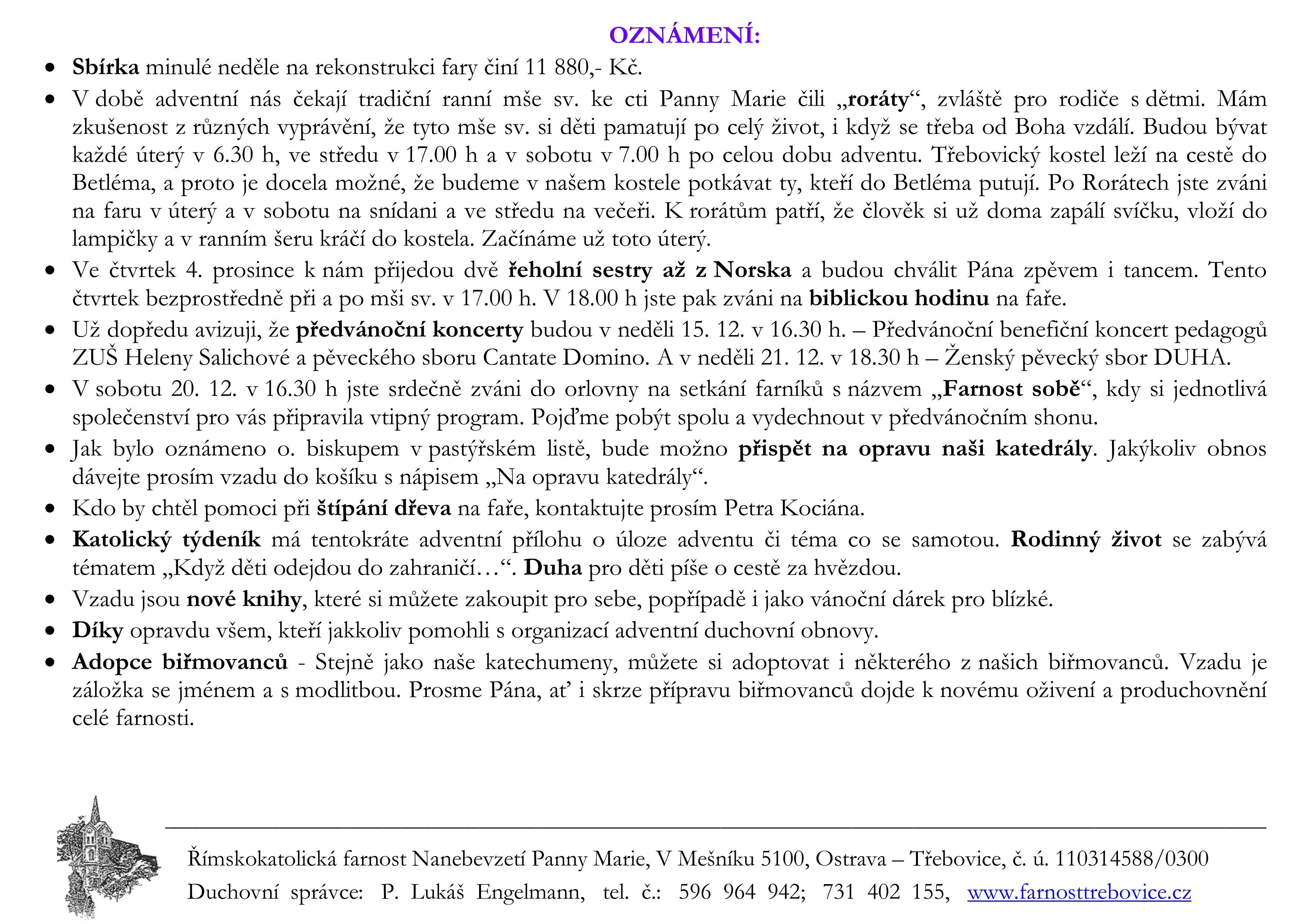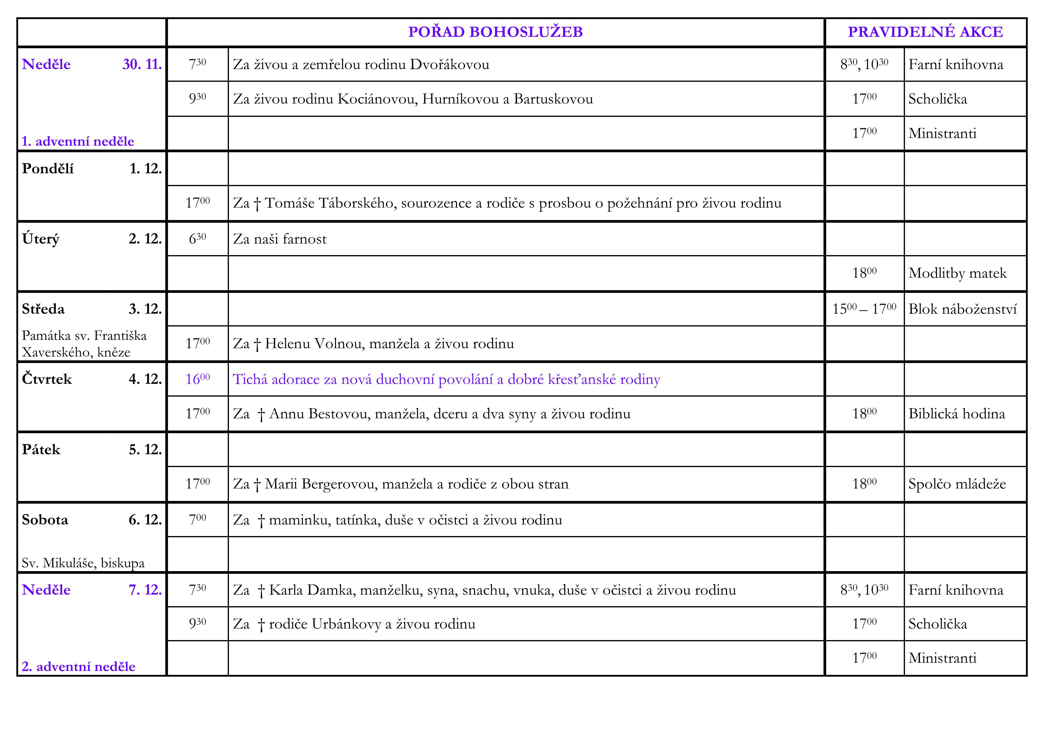 1. neděle adventní – pořad bohoslužeb a ohlášky V neděli 30. listopadu slavíme 1. neděli adventní. Prohlédněte si pořad bohoslužeb a ohlášky. Previous postSlavnost Ježíše Krista Krále – pořad bohoslužeb a ohlášky Next postAdventní duchovní obnova s Kateřinou Lachmanovou Komentáře nejsou povoleny.