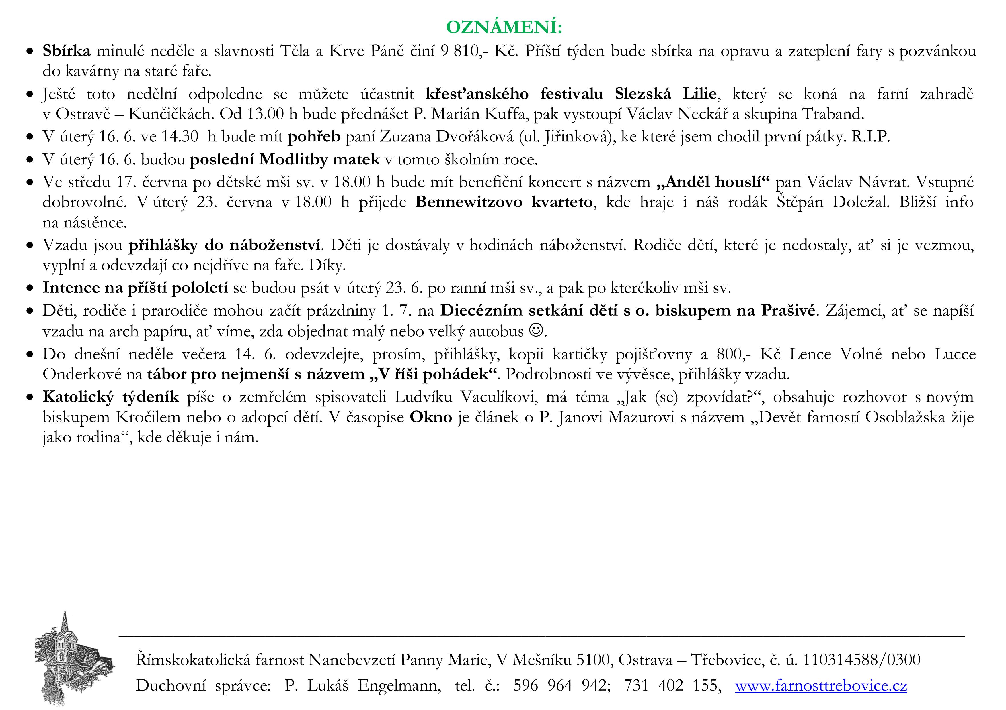 11. neděle v mezidobí V neděli 14. června slavíme 11. neděli v mezidobí. Prohlédněte si pořad bohoslužeb a ohlášky. Previous post10. neděle v mezidobí Next postZveme Vás na benefiční koncert „Anděl houslí“ Komentáře nejsou povoleny.