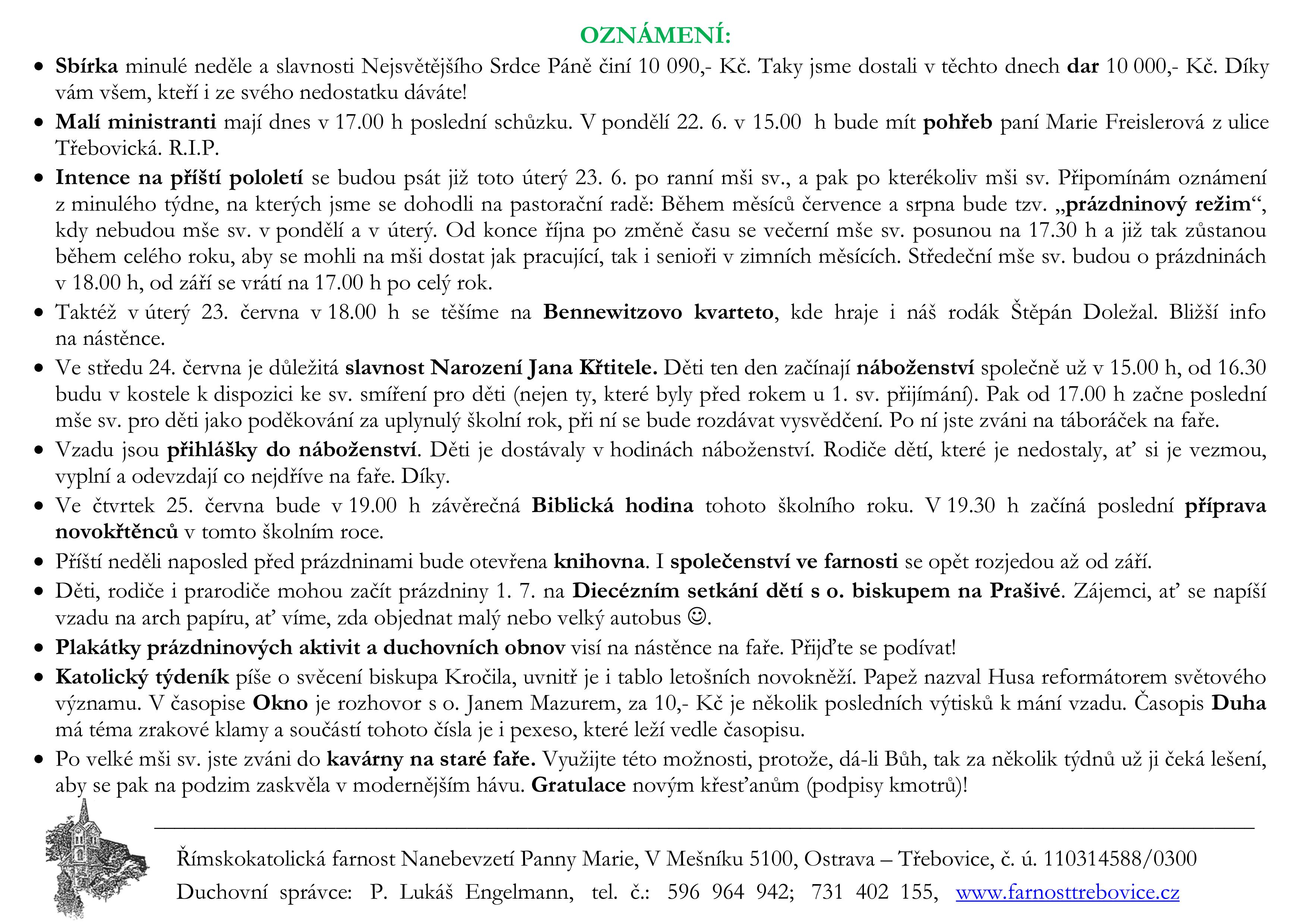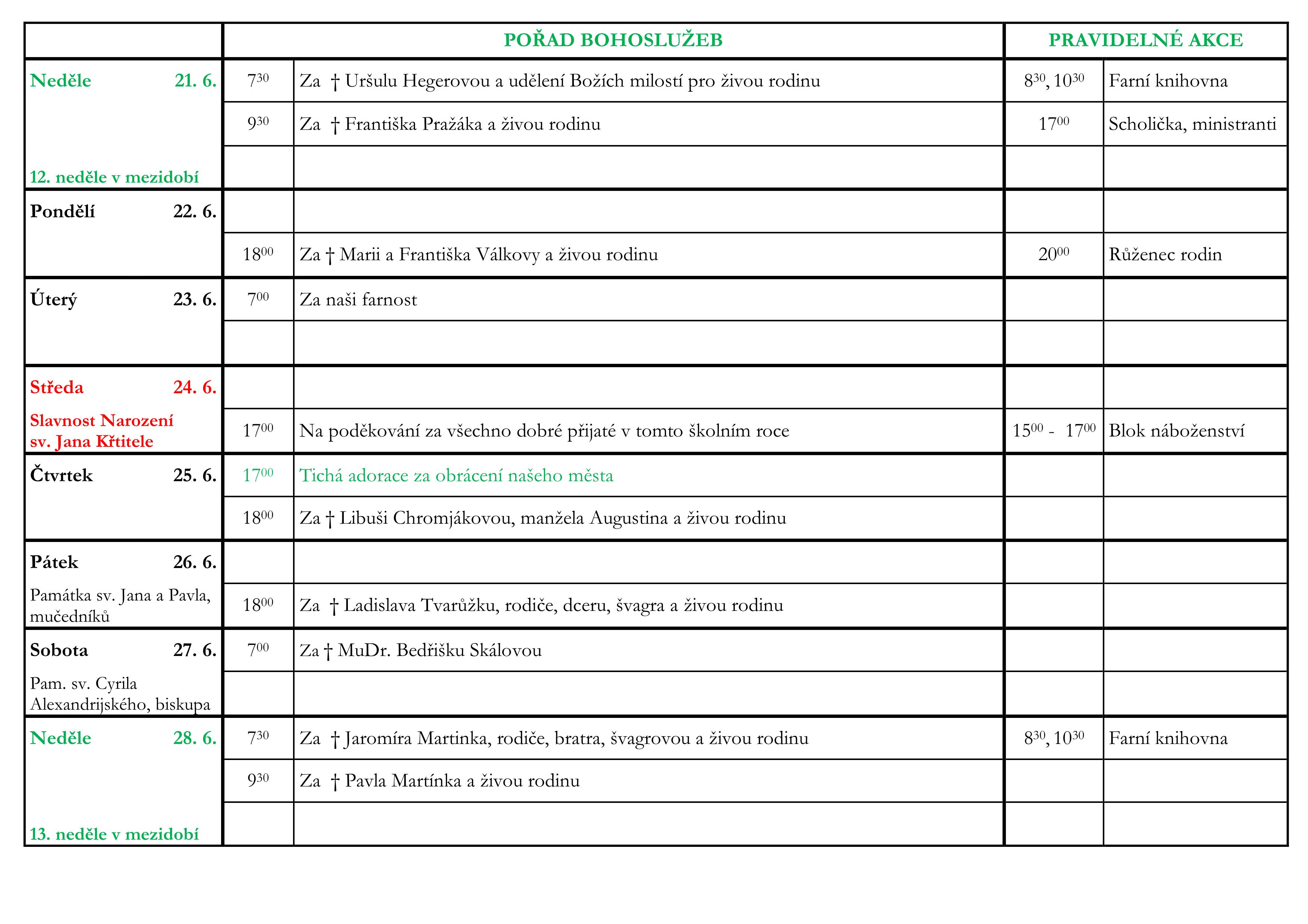 21. června 2015 - pořad bohoslužeb  21. června 2015 - ohlášky