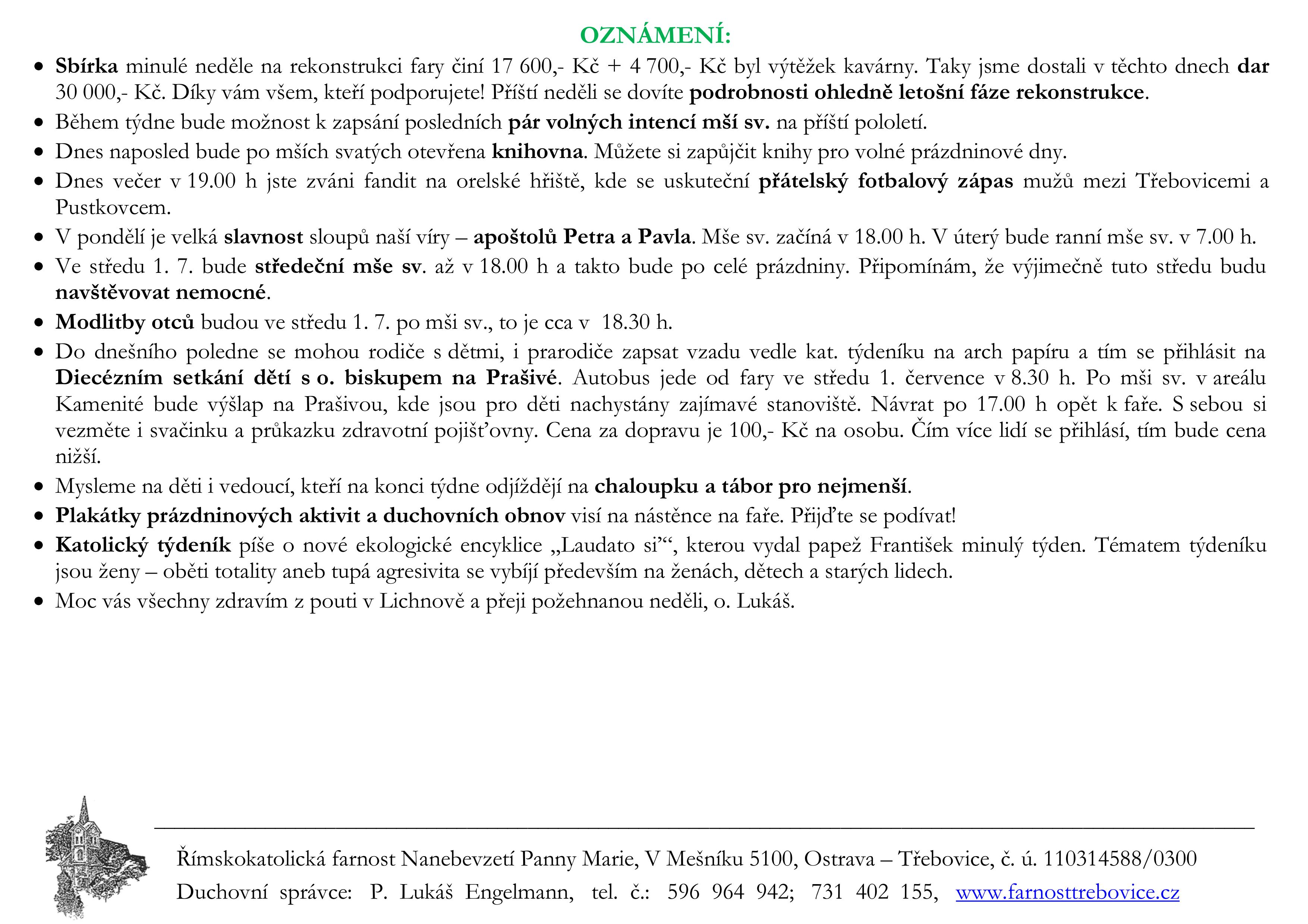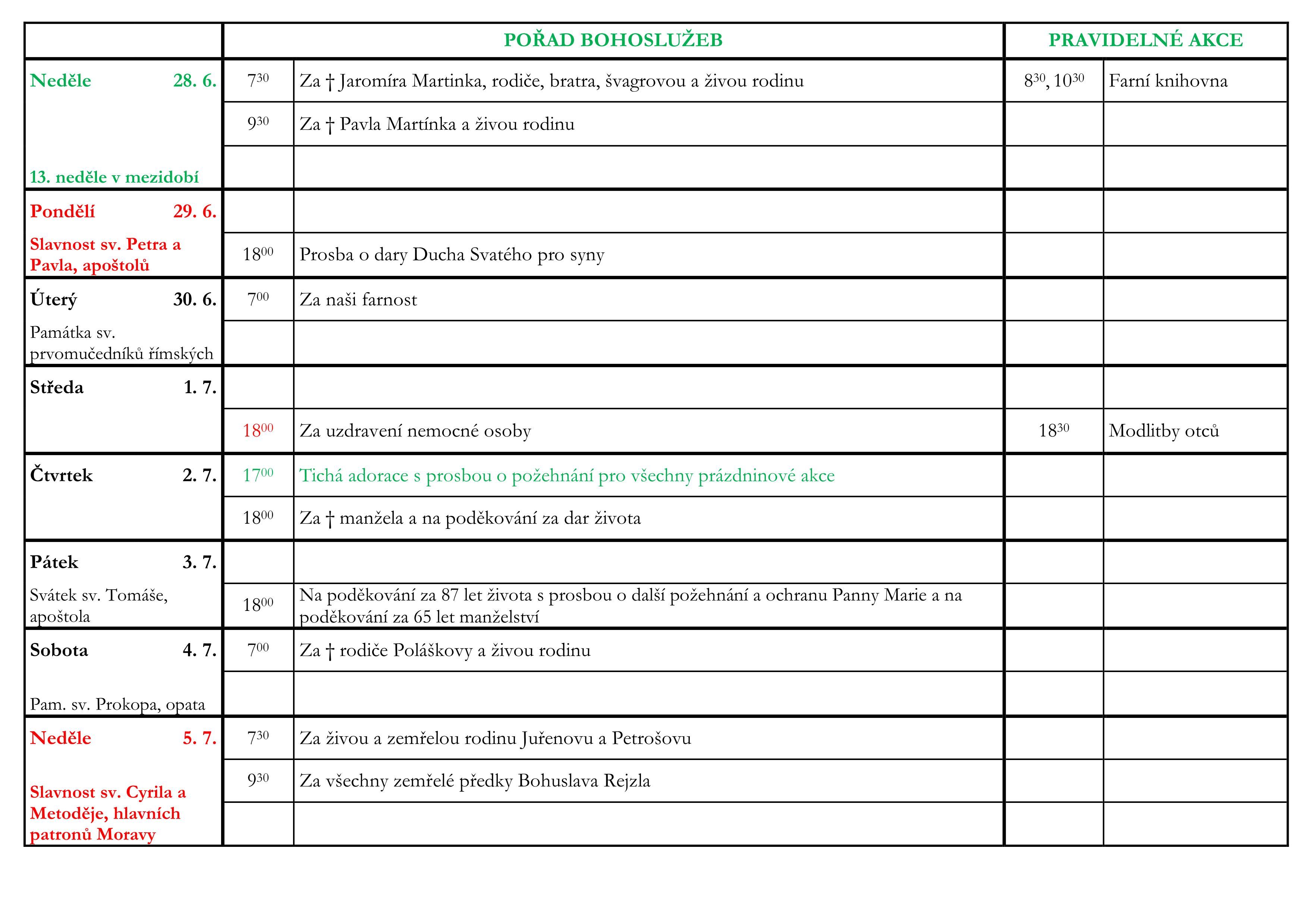 13. neděle v mezidobí V neděli 28. června slavíme 13. neděli v mezidobí. Prohlédněte si pořad bohoslužeb a ohlášky. Previous post12. neděle v mezidobí Next postPříměstský tábor 2015 Komentáře nejsou povoleny.