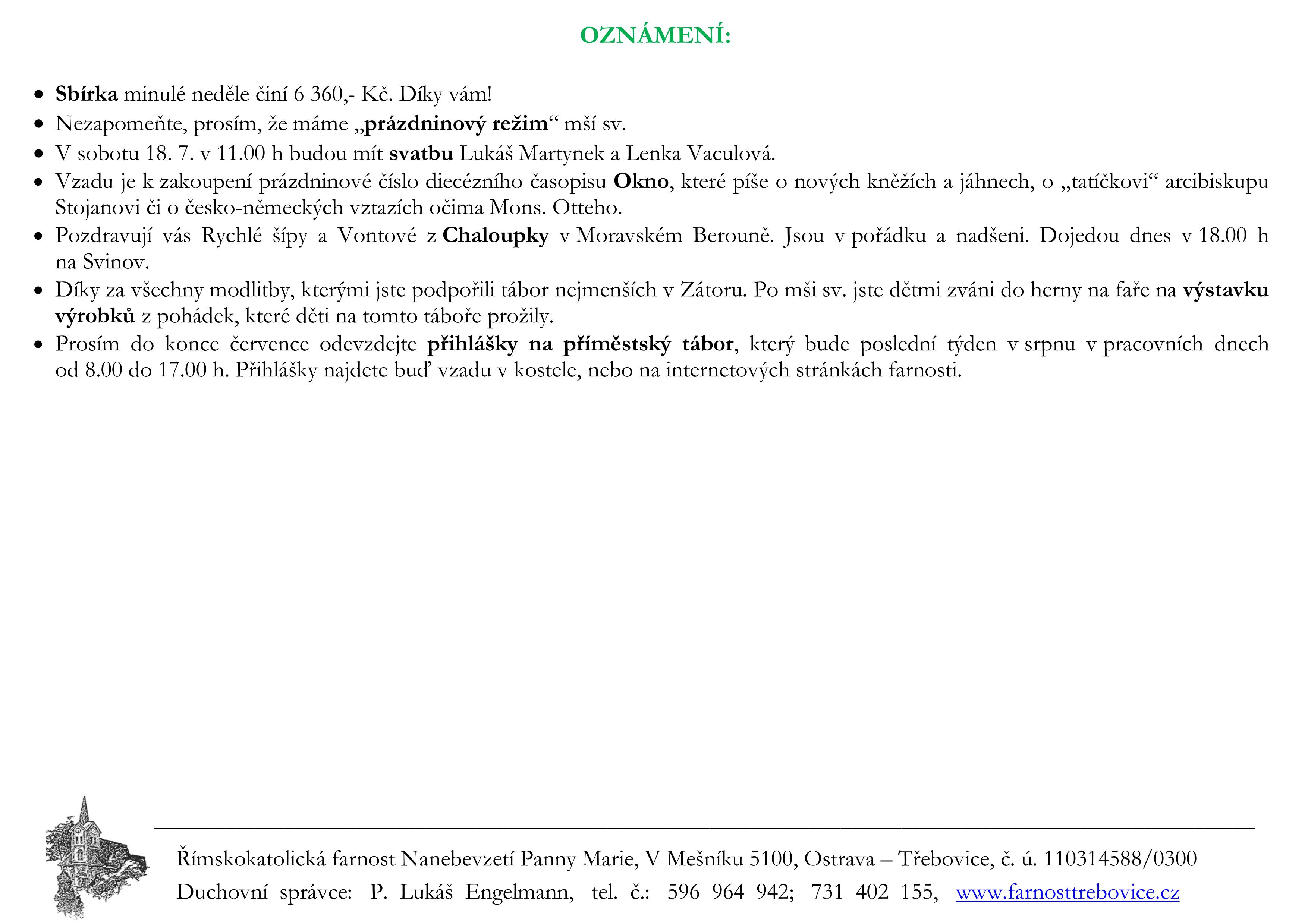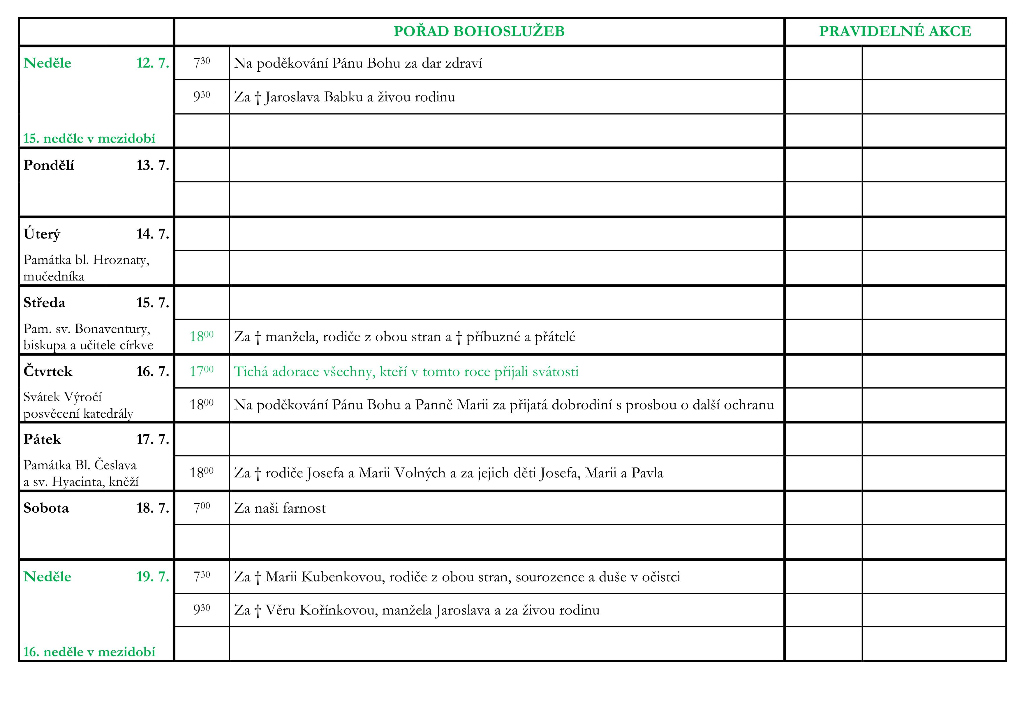 15. neděle v mezidobí V neděli 12. července slavíme 15. neděli v mezidobí. Prohlédněte si pořad bohoslužeb a ohlášky. Previous postSlavnost sv. Cyrila a Metoděje Next post16. neděle v mezidobí Komentáře nejsou povoleny.