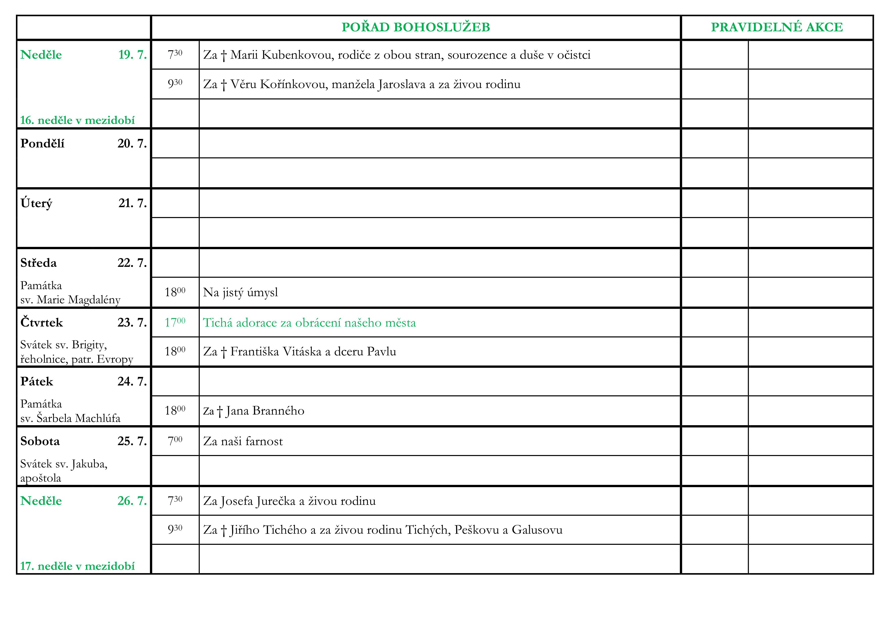 16. neděle v mezidobí V neděli 19. července slavíme 16. neděli v mezidobí. Prohlédněte si pořad bohoslužeb a ohlášky. Previous post15. neděle v mezidobí Next post17. neděle v mezidobí Komentáře nejsou povoleny.