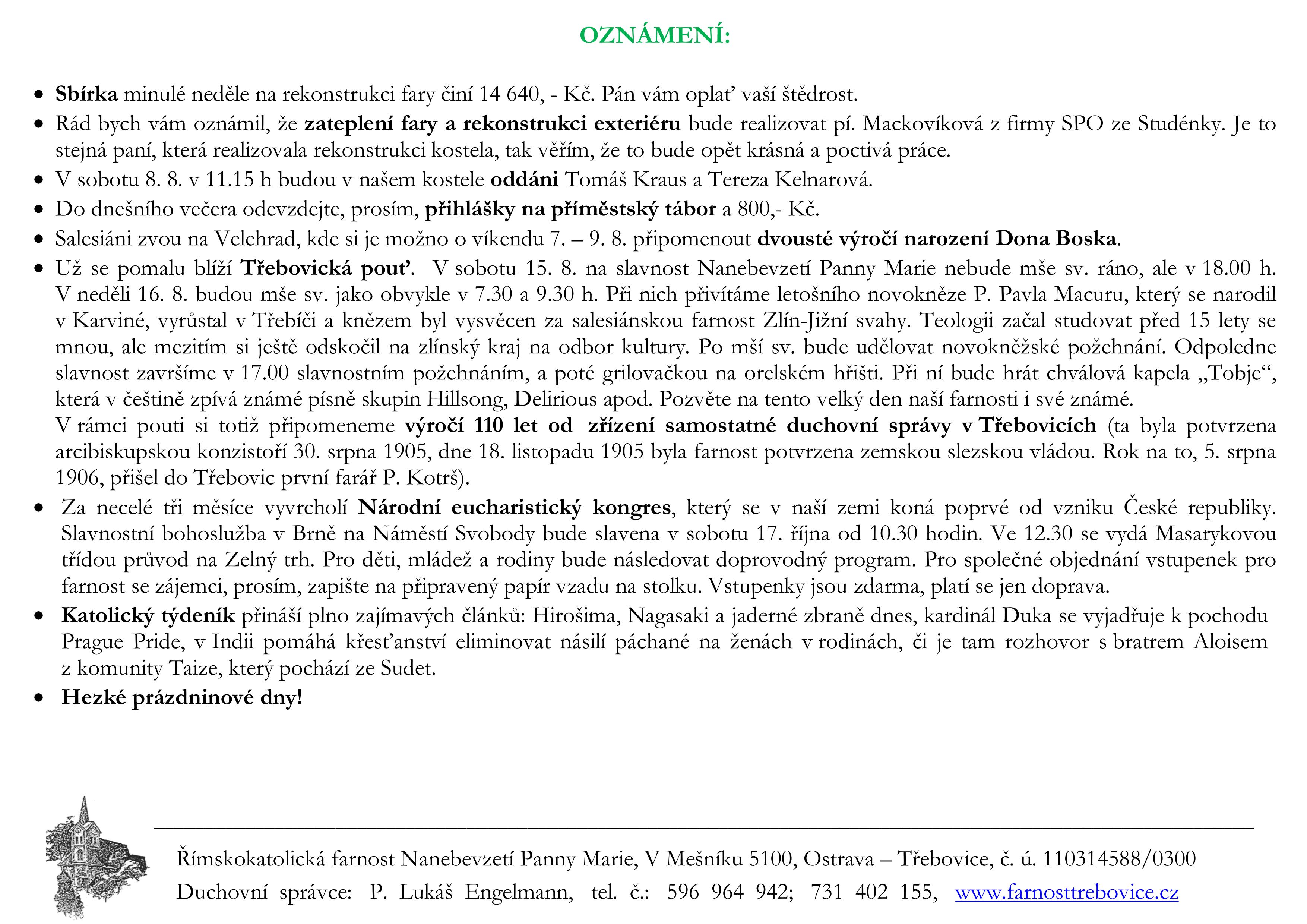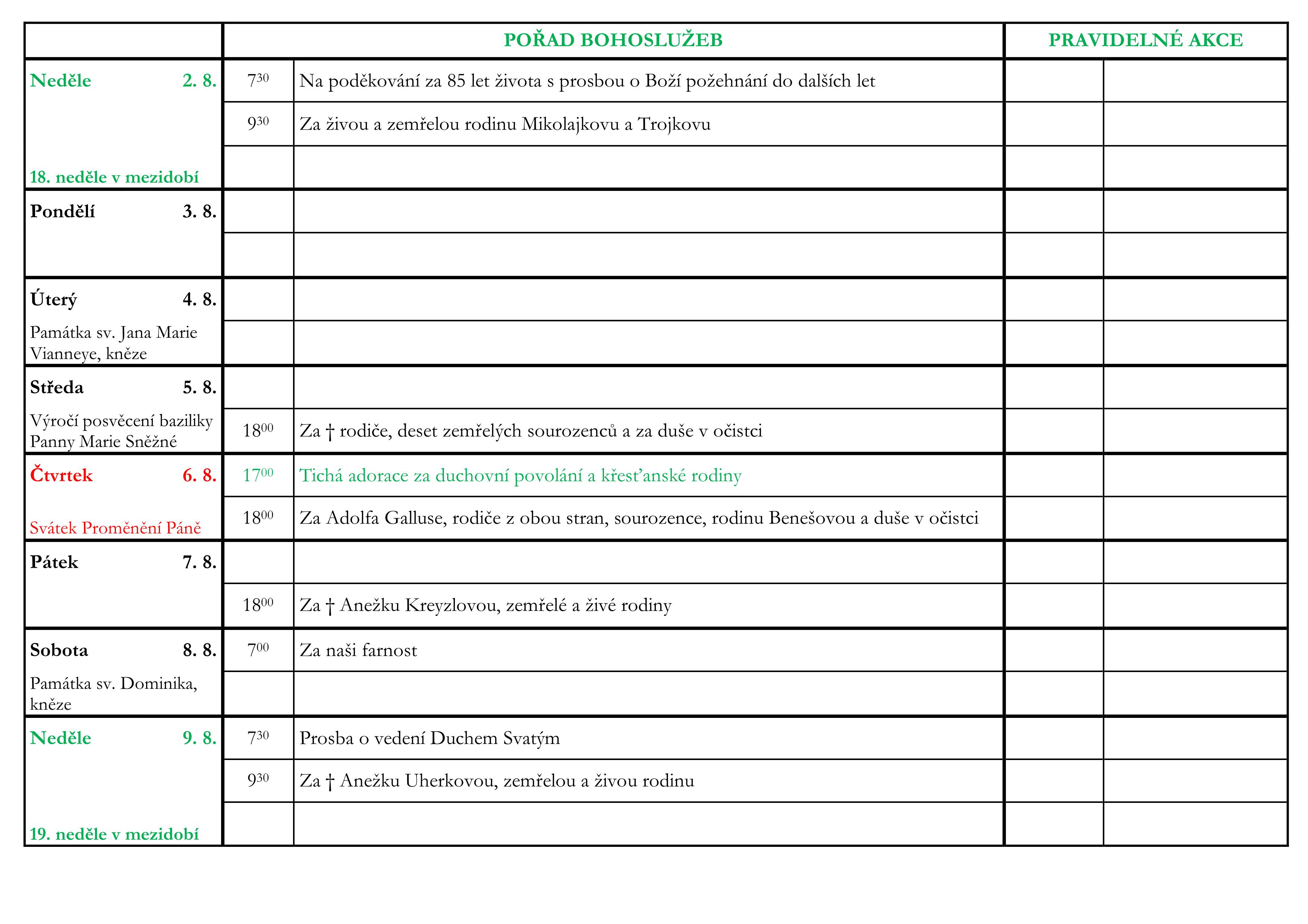 18. neděle v mezidobí V neděli 2. srpna slavíme 18. neděli v mezidobí. Prohlédněte si pořad bohoslužeb a ohlášky. Previous post17. neděle v mezidobí Next post19. neděle v mezidobí Komentáře nejsou povoleny.