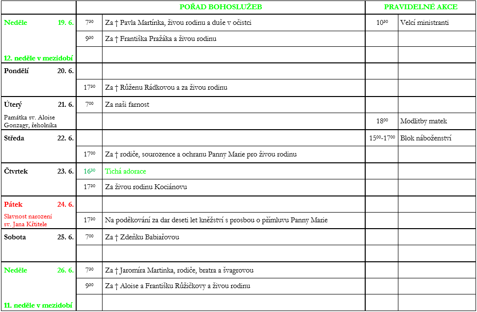 12. neděle v mezidobí V neděli 19. června slavíme 12. neděli v mezidobí. Prohlédněte si pořad bohoslužeb a ohlášky. Previous post11. neděle v mezidobí Next post13. neděle v mezidobí Komentáře nejsou povoleny.