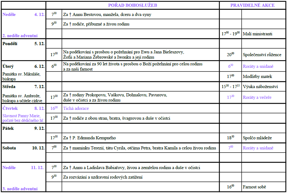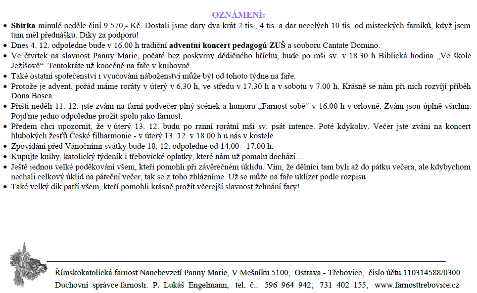2. neděle adventní V neděli 4. prosince slavíme 2. neděli adventní. Prohlédněte si pořad bohoslužeb a ohlášky. Previous postAdventní duchovní obnova pro každého 2. a 3. 12. 2016 Next postV sekci „Nová fara“ máme nové fotky Komentáře nejsou povoleny.
