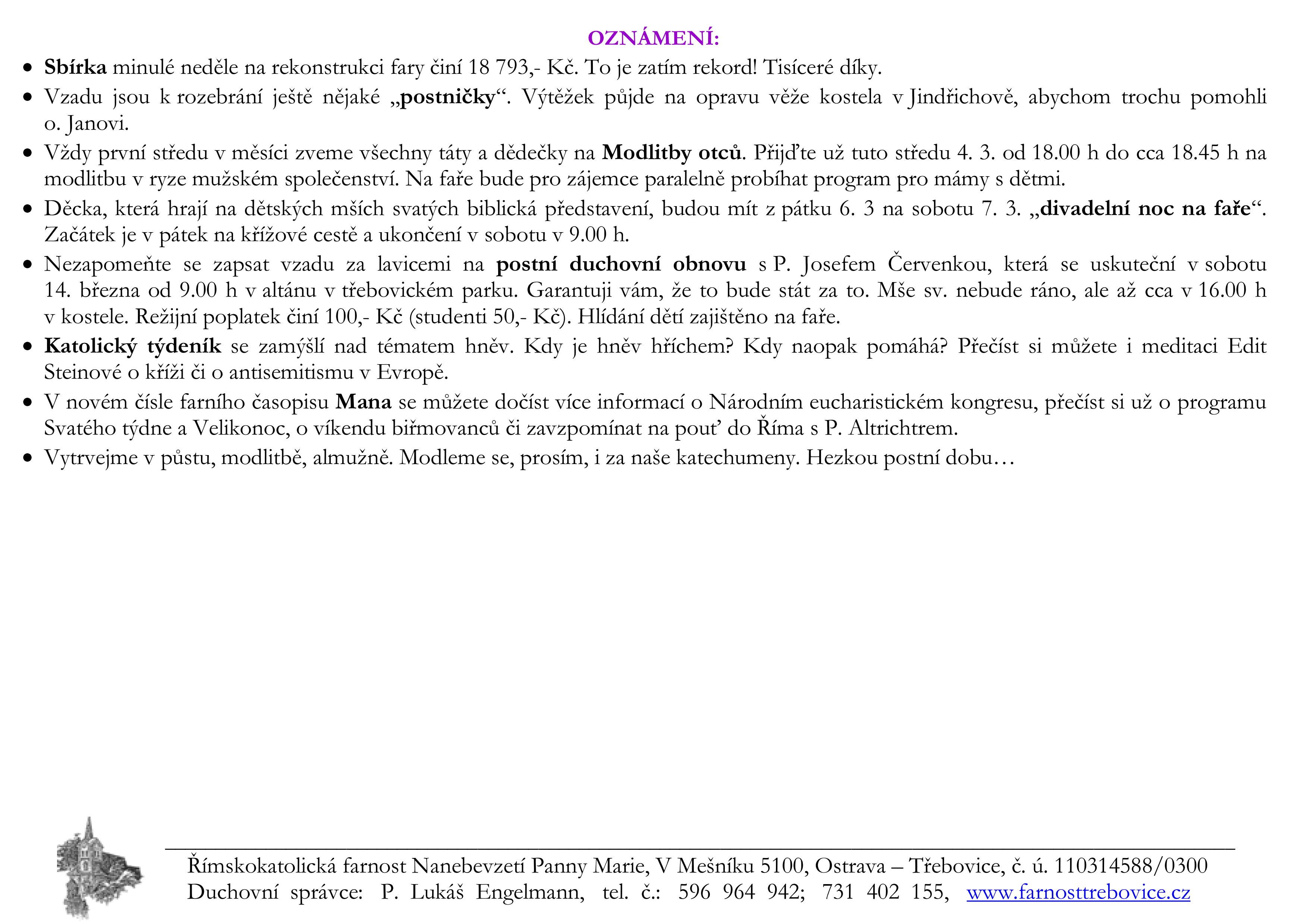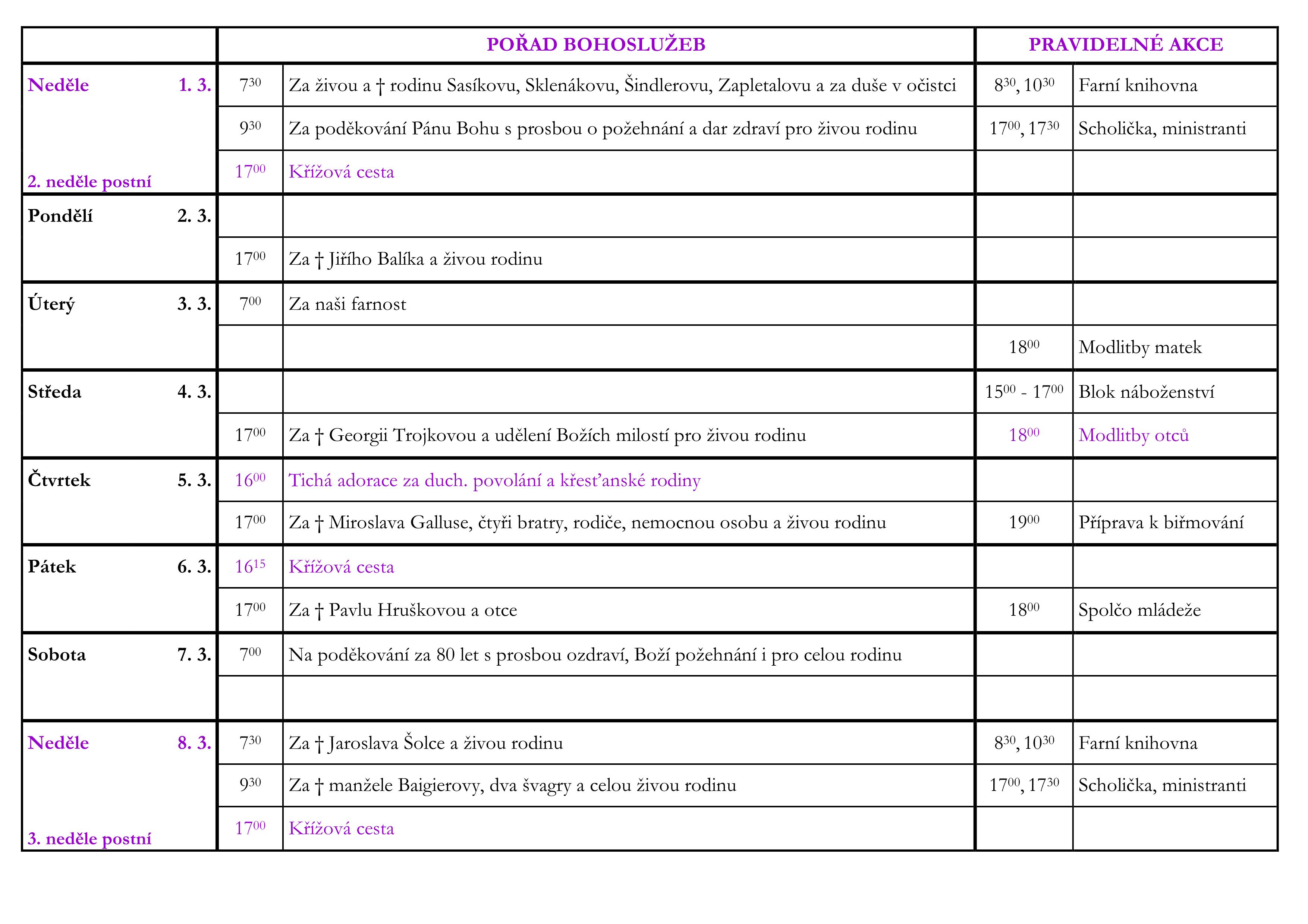 2. Neděle postní V neděli 1. března slavíme 2. neděli postní. Prohlédněte si pořad bohoslužeb a ohlášky. Previous postÚNOROVÉ ČÍSLO MANY Next post3. neděle postní Komentáře nejsou povoleny.