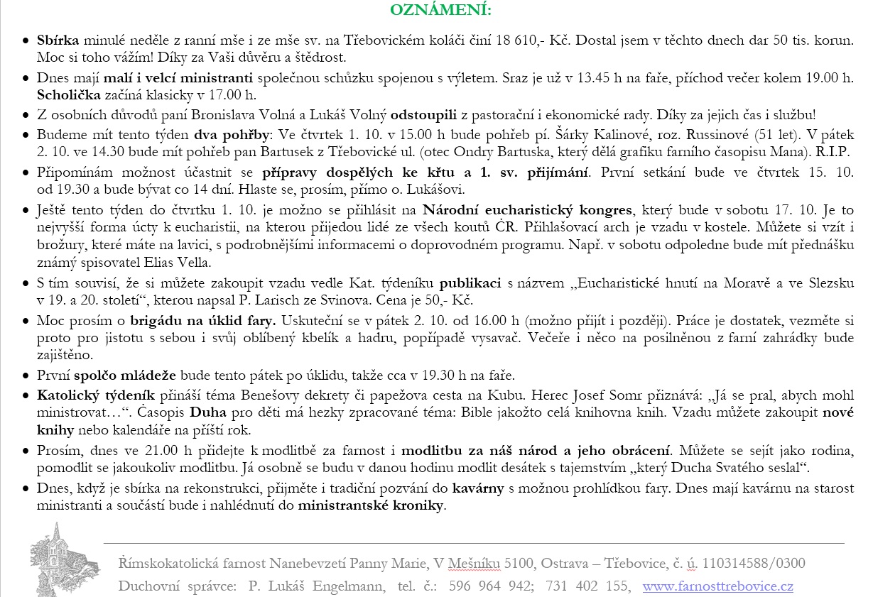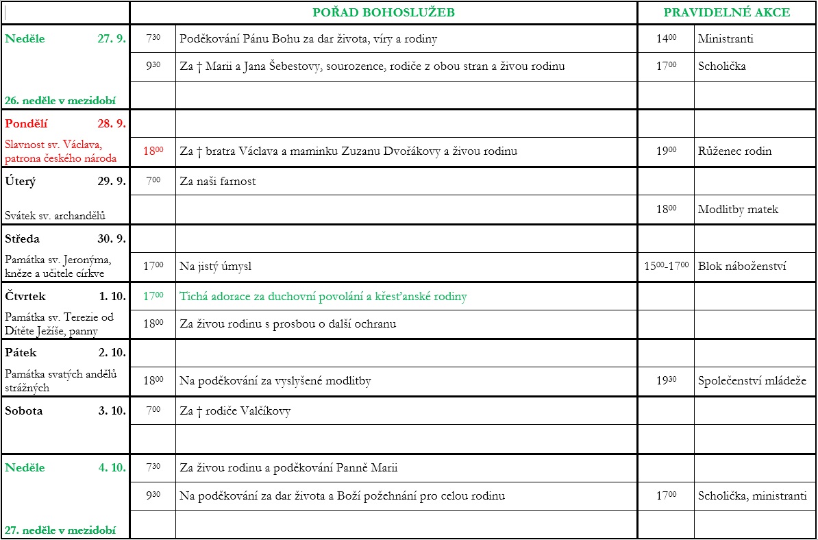 26. neděle v mezidobí V neděli 27. září slavíme 26. neděli v mezidobí. Prohlédněte si pořad bohoslužeb a ohlášky. Previous post25. neděle v mezidobí Next post27. neděle v mezidobí Komentáře nejsou povoleny.