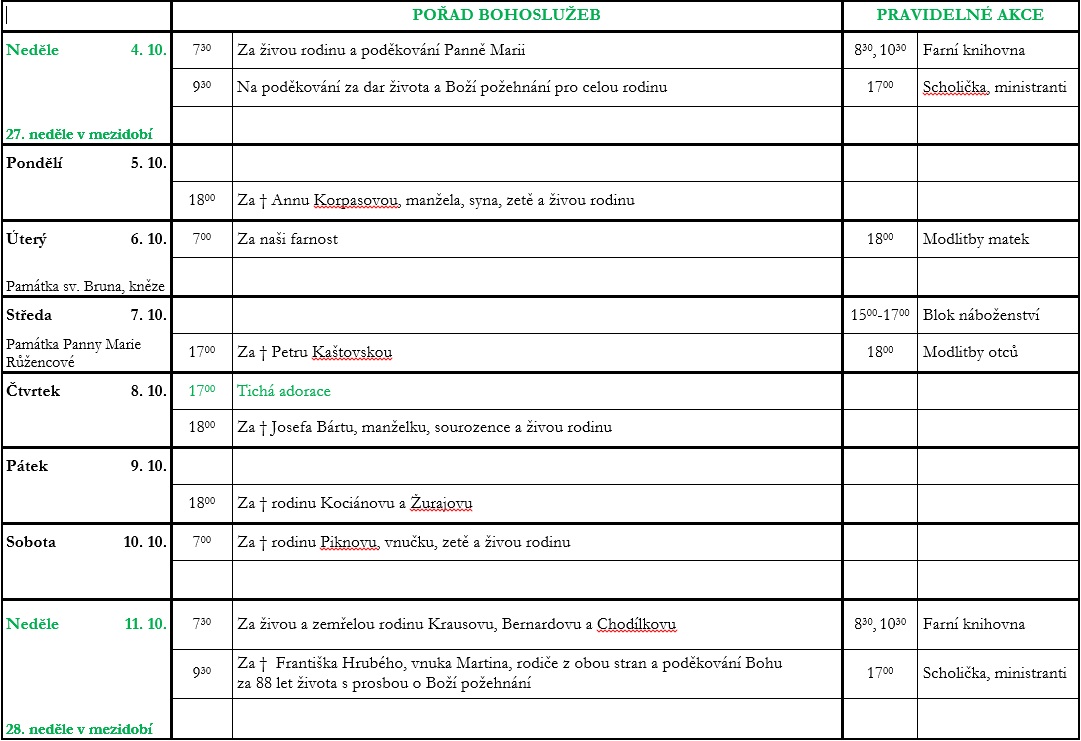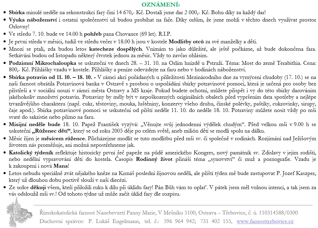 27. neděle v mezidobí V neděli 4. října slavíme 27. neděli v mezidobí. Prohlédněte si pořad bohoslužeb a ohlášky. Previous post26. neděle v mezidobí Next postMost do země Terabithia Komentáře nejsou povoleny.