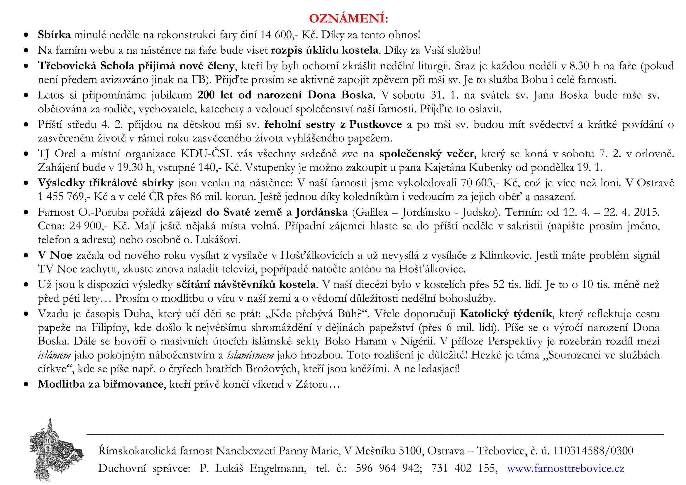3. neděle v mezidobí V neděli 25. ledna slavíme 3. neděli v mezidobí. Prohlédněte si pořad bohoslužeb a ohlášky. Previous postAktuální číslo Many Next post4. neděle v mezidobí Komentáře nejsou povoleny.