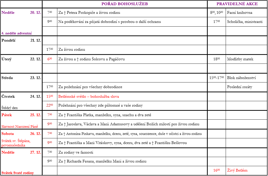 4. neděle adventní V neděli 20. prosince slavíme 4. neděli adventní. Prohlédněte si pořad bohoslužeb a ohlášky. Previous post3. neděle adventní Next postSvátek Svaté Rodiny Komentáře nejsou povoleny.