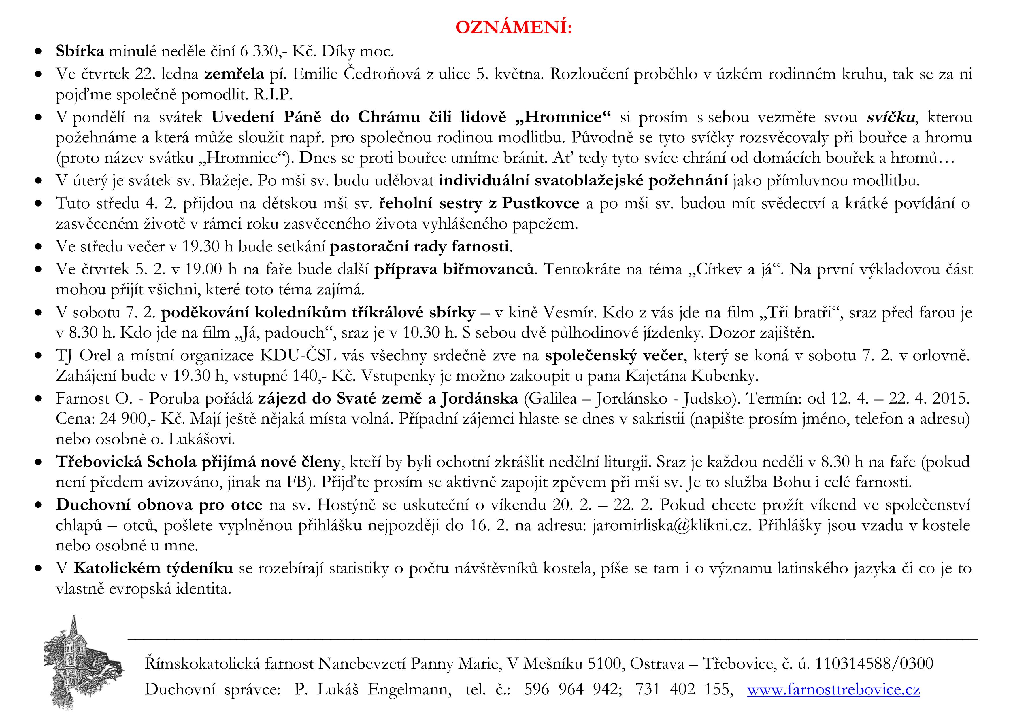 4. neděle v mezidobí V neděli 1. února slavíme 4. neděli v mezidobí. Prohlédněte si pořad bohoslužeb a ohlášky. Previous post3. neděle v mezidobí Next post5. neděle v mezidobí Komentáře nejsou povoleny.