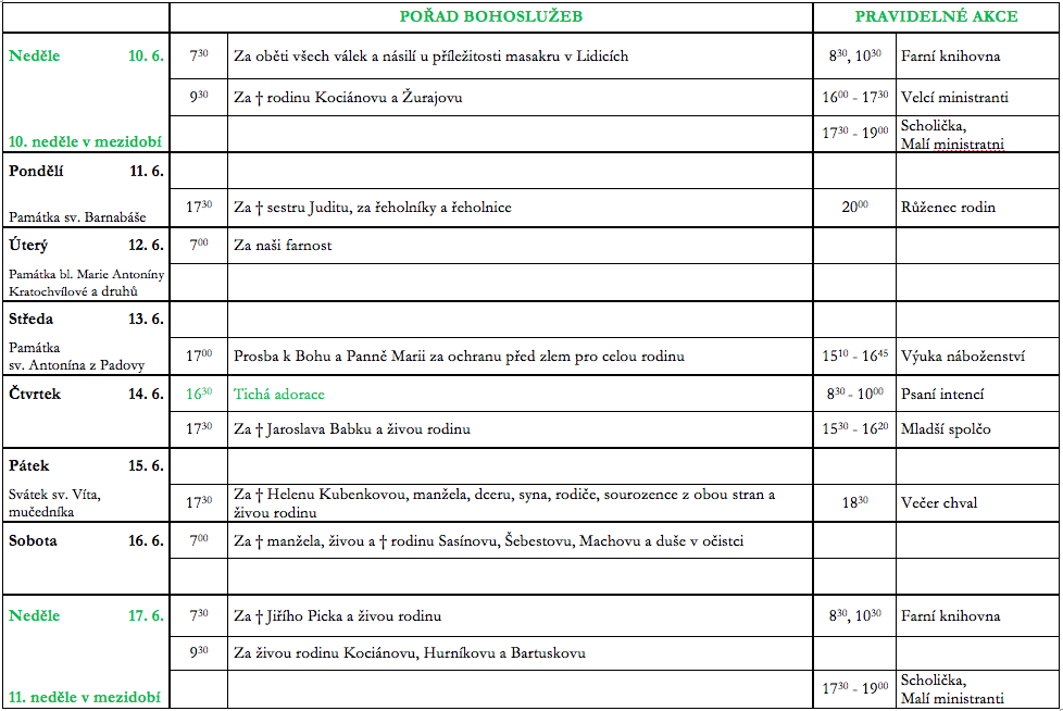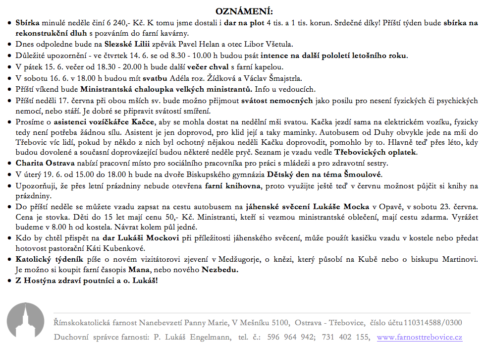 Ohlášky 10. neděle v mezidobí V neděli 10. června slavíme 10. neděli v mezidobí. Prohlédněte si pořad bohoslužeb a ohlášky. Previous postOhlášky 9. neděle v mezidobí Next postOhlášky 11. neděle v mezidobí Komentáře nejsou povoleny.