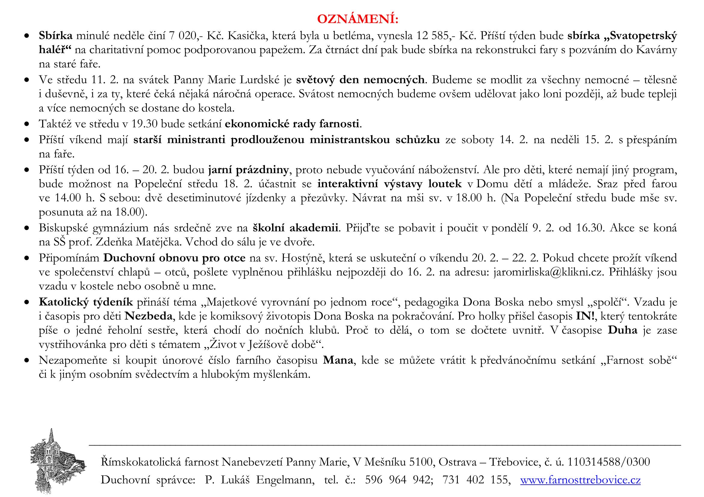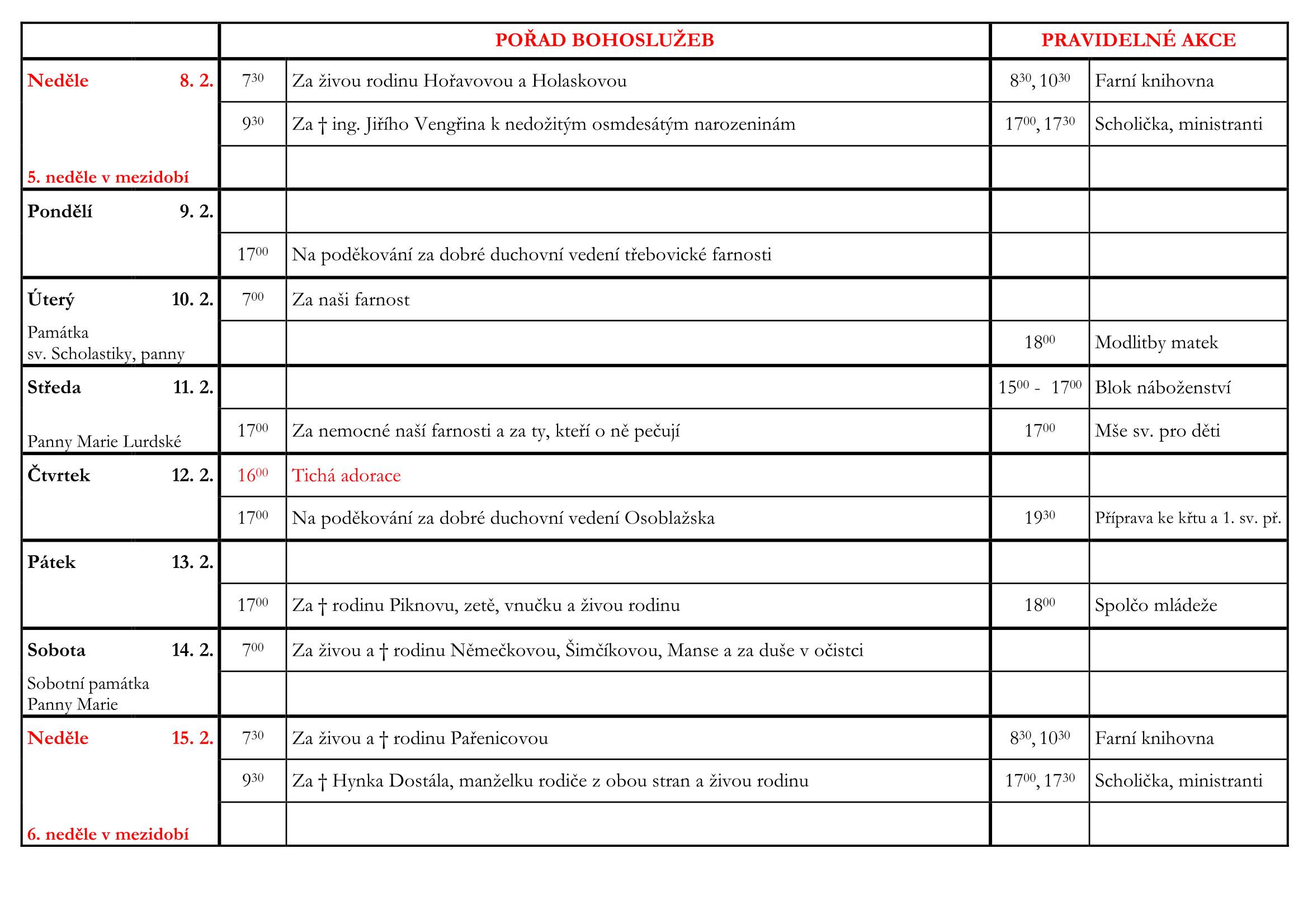 5. neděle v mezidobí V neděli 8. února slavíme 5. neděli v mezidobí. Prohlédněte si pořad bohoslužeb a ohlášky. Previous post4. neděle v mezidobí Next post6. neděle v mezidobí Komentáře nejsou povoleny.