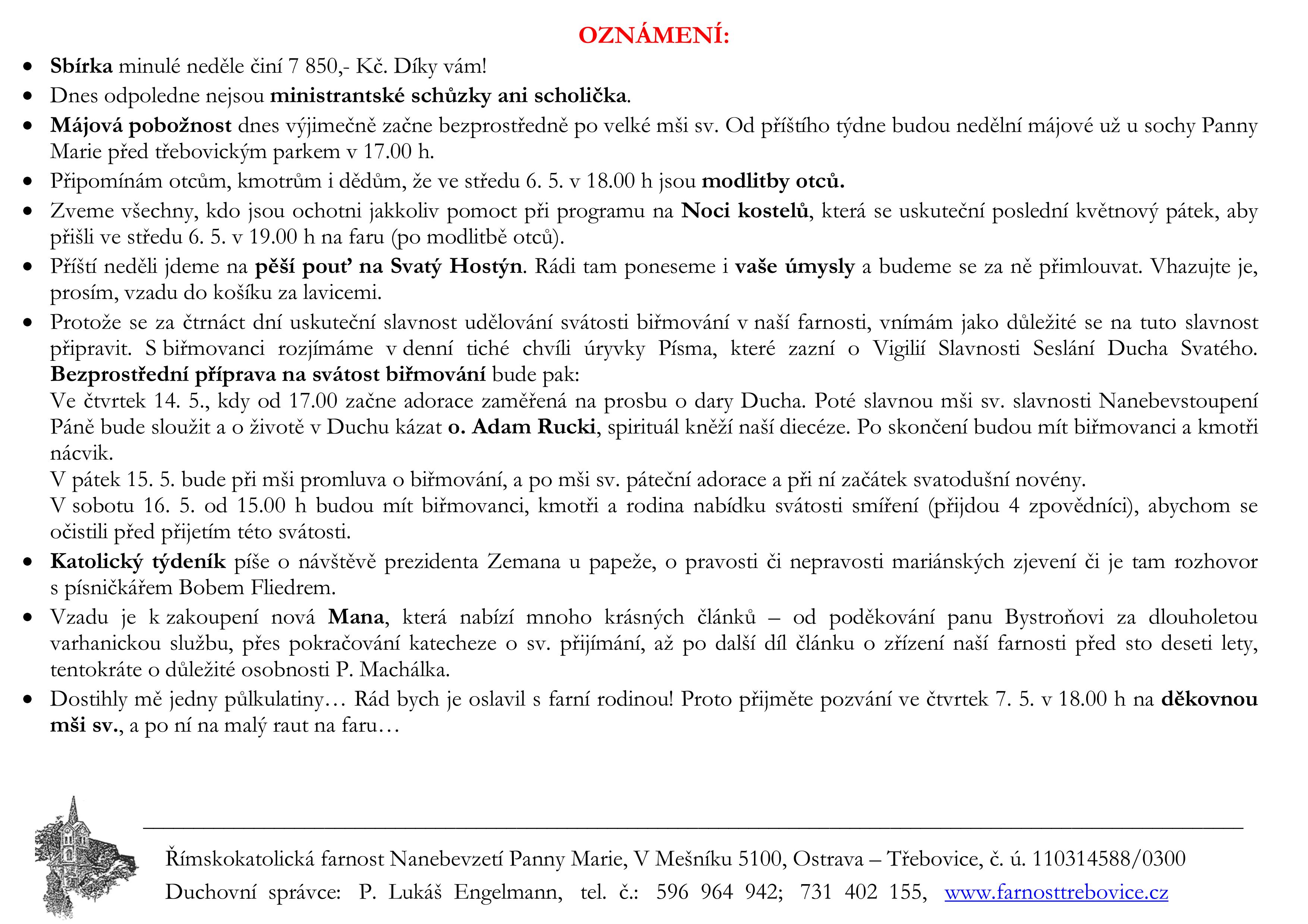 5. neděle velikonoční V neděli 3. května slavíme 5. neděli velikonoční. Prohlédněte si pořad bohoslužeb a ohlášky. Previous post4. neděle velikonoční – dobrého pastýře Next post6. neděle velikonoční Komentáře nejsou povoleny.