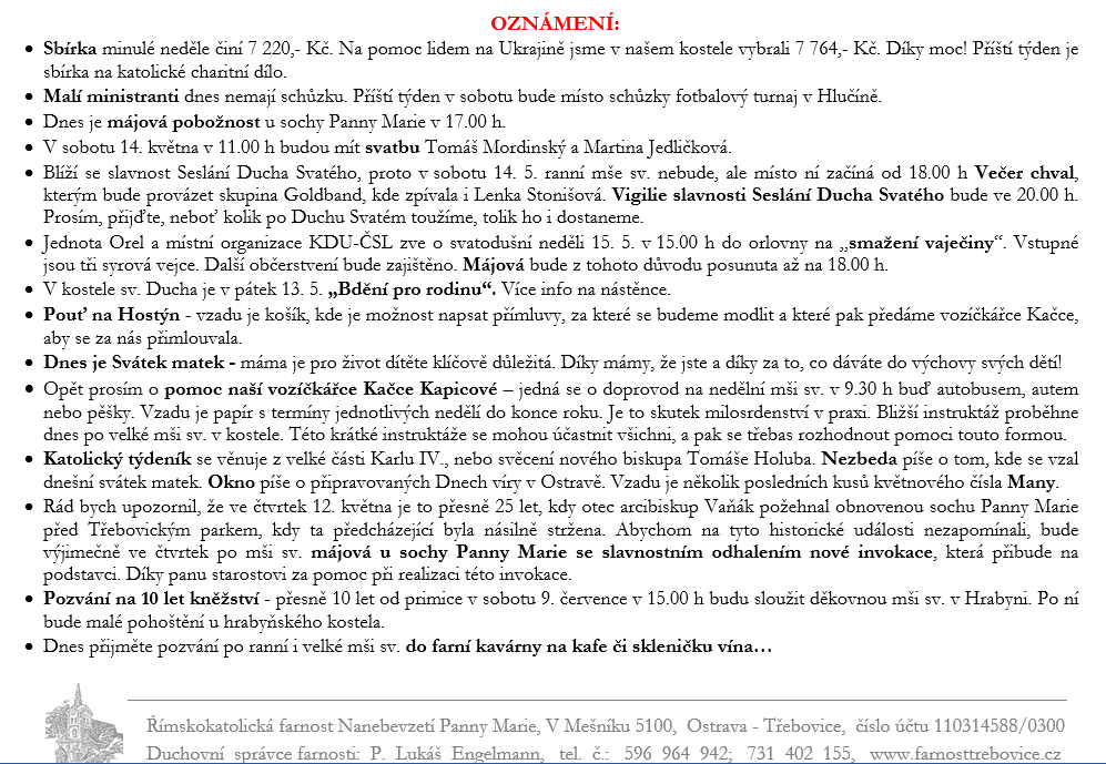 7. neděle velikonoční neděle V neděli 8. května slavíme 7. neděli velikonoční. Prohlédněte si pořad bohoslužeb a ohlášky. Previous post6. neděle velikonoční neděle Next postSlavnost Seslání Ducha Svatého Komentáře nejsou povoleny.
