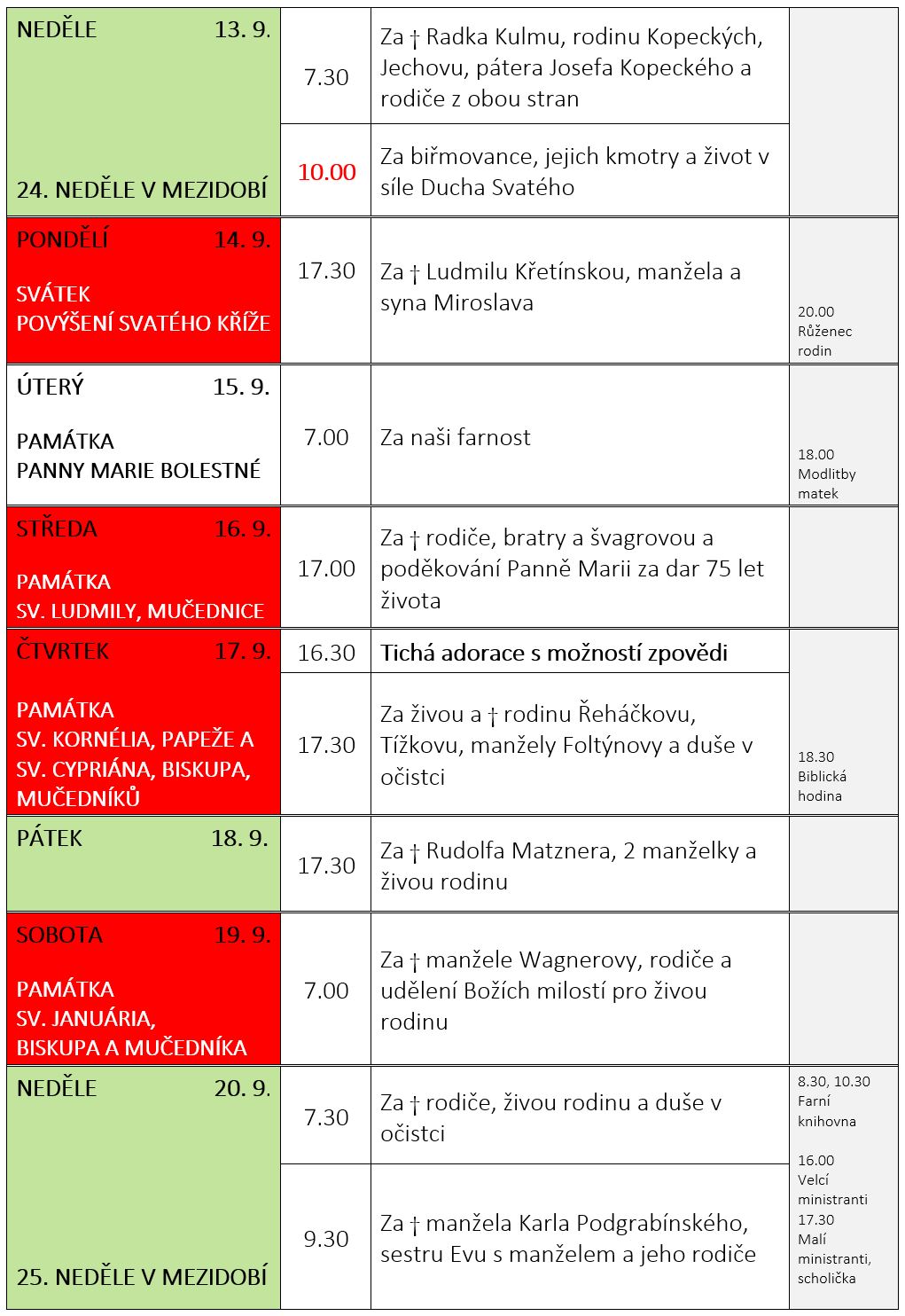 V neděli 13. září slavíme 24. NEDĚLI V MEZIDOBÍ. Prohlédněte si pořad bohoslužeb a ohlášky.