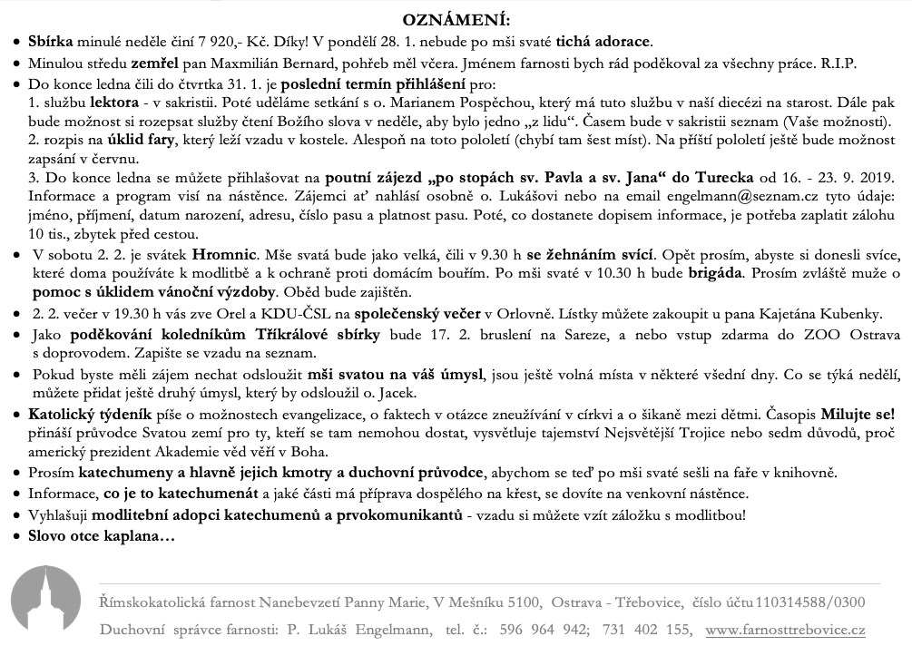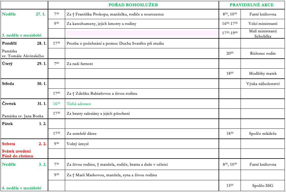 V neděli 27. ledna slavíme 3. neděli v mezidobí. Prohlédněte si pořad bohoslužeb a ohlášky.