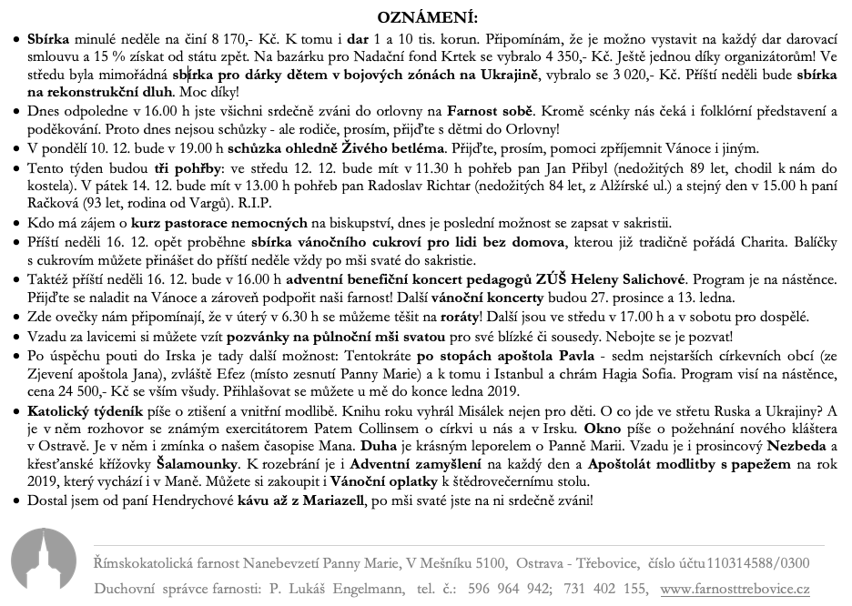 Aktuality k 9. prosinci V neděli 9. prosince slavíme 2. neděli adventní. Prohlédněte si pořad bohoslužeb a ohlášky. Previous postAktuality ke 2. prosinci Next postAktuality k 16. prosinci Komentáře nejsou povoleny.
