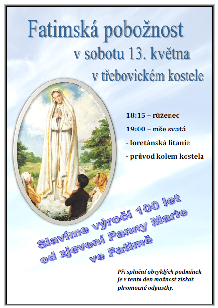 Fatimská pobožnost v sobotu 13. 5. 2017