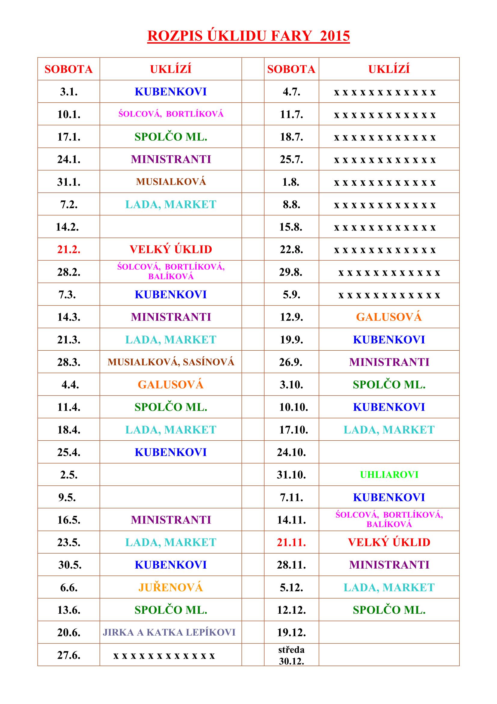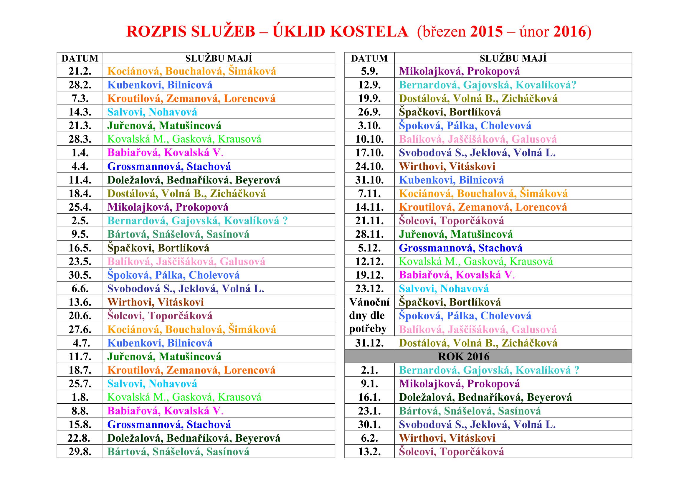 Nové rozpisy úklidu fary a kostela si můžete prohlédnout po kliknutí na obrázek nebo je naleznete také ZDE.