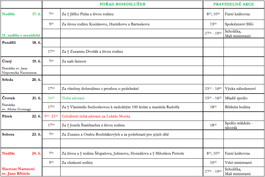 Ohlášky 11. neděle v mezidobí V neděli 17. června slavíme 11. neděli v mezidobí. Prohlédněte si pořad bohoslužeb a ohlášky. Previous postOhlášky 10. neděle v mezidobí Next postOhlášky Slavnosti Narození sv. Jana Křtitele Komentáře nejsou povoleny.