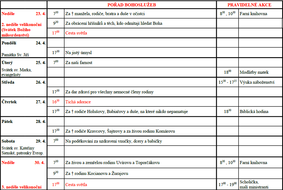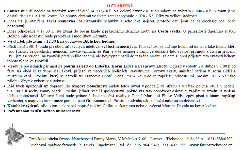 Ohlášky 2. neděle velikonoční Božího milosrdenství