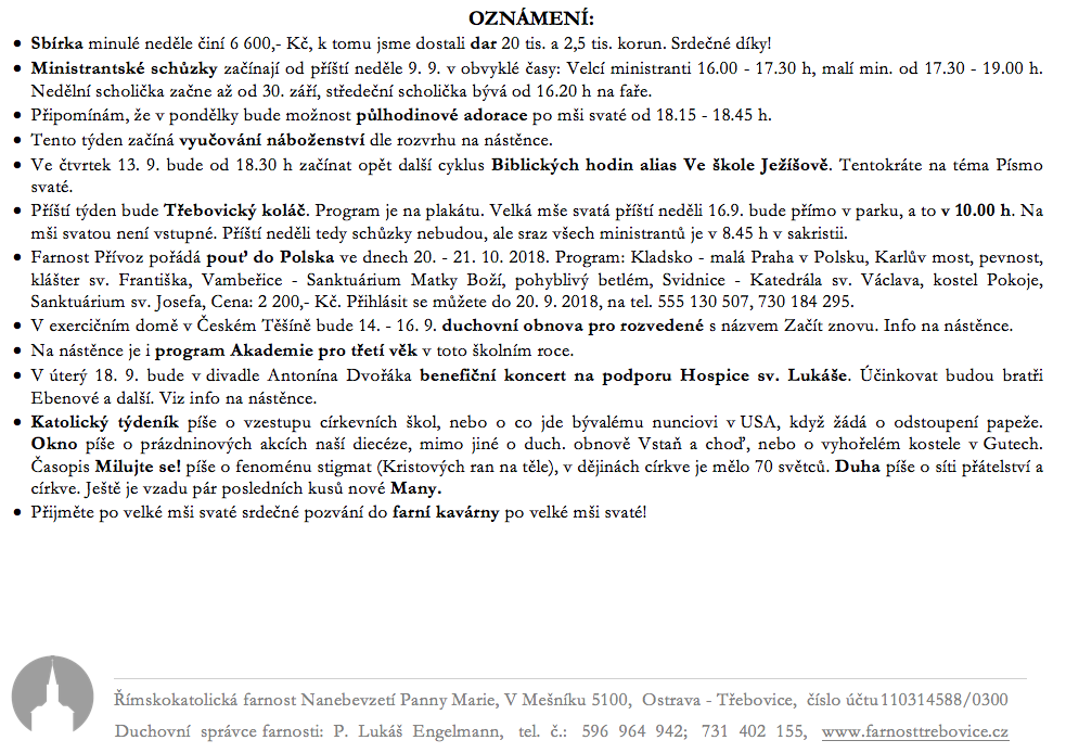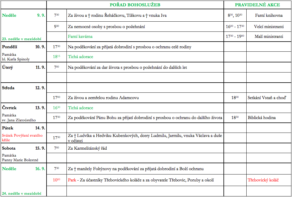 Aktuality k 9. září 2018 V neděli 9. září slavíme 23. neděli v mezidobí. Prohlédněte si pořad bohoslužeb a ohlášky. Previous postAktuality k 2. září 2018 Next postAktuality k 16. září 2018 Komentáře nejsou povoleny.