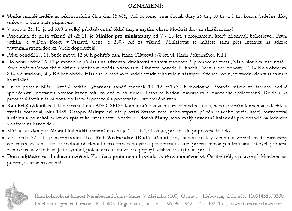 Ohlášky 33. neděle v mezidobí