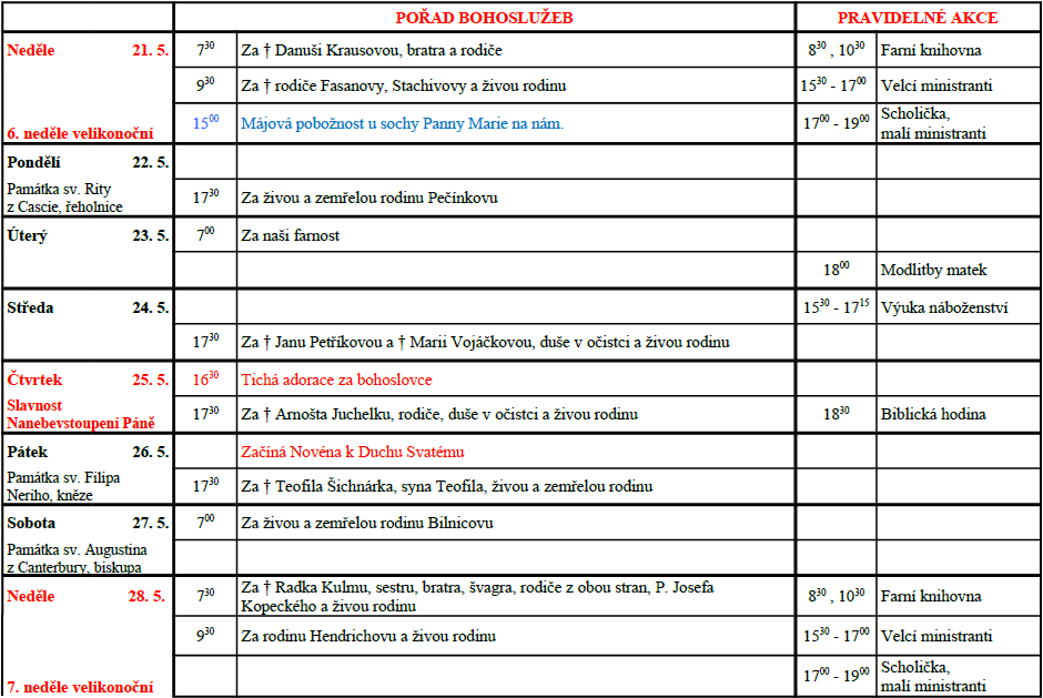 Ohlášky 6. neděle velikonoční V neděli 21. května slavíme 6. neděli velikonoční. Prohlédněte si pořad bohoslužeb a ohlášky. Previous postOhlášky 5. neděle velikonoční Next postOhlášky 7. neděle velikonoční Komentáře nejsou povoleny.