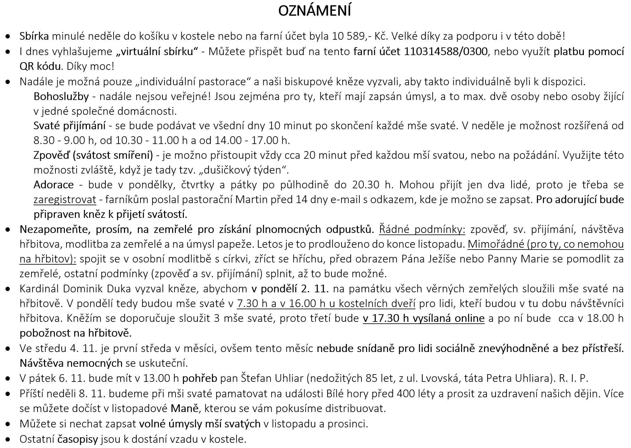V neděli 1. listopadu slavíme SLAVNOST VŠECH SVATÝCH. Prohlédněte si pořad bohoslužeb a ohlášky.