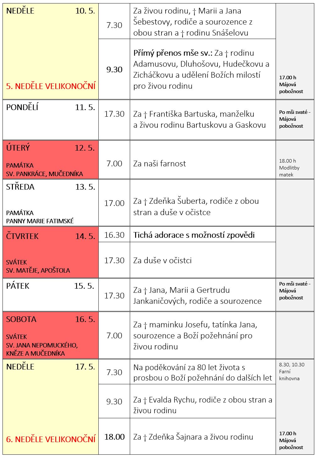 Ohlášky k 17. květnu
