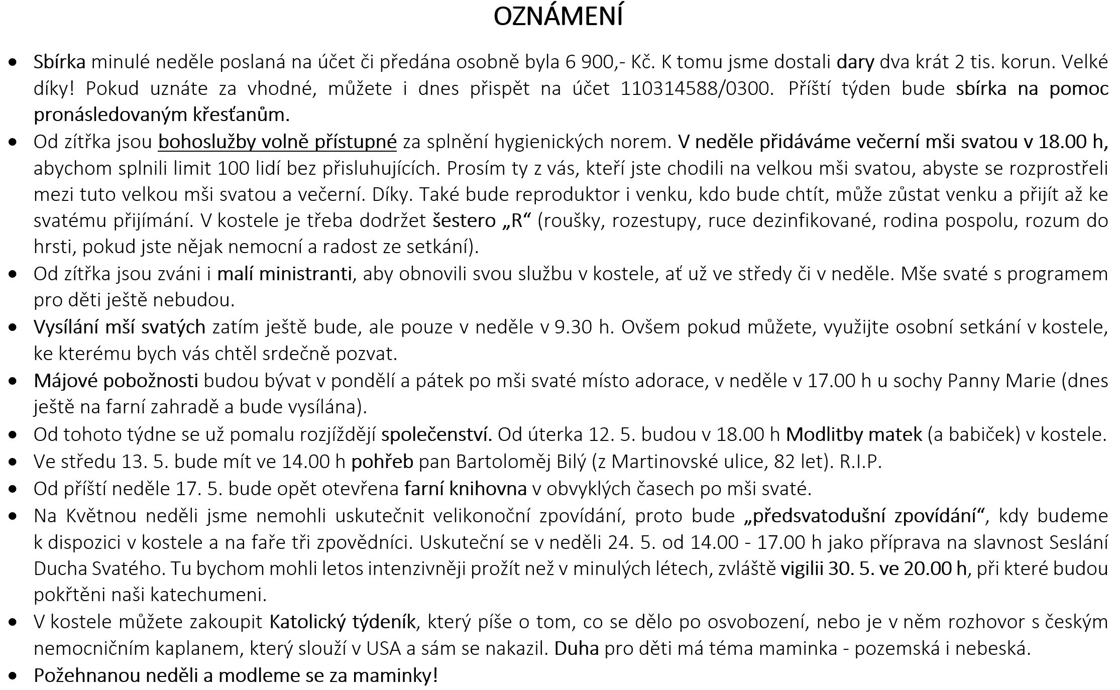 Ohlášky k 10. květnu