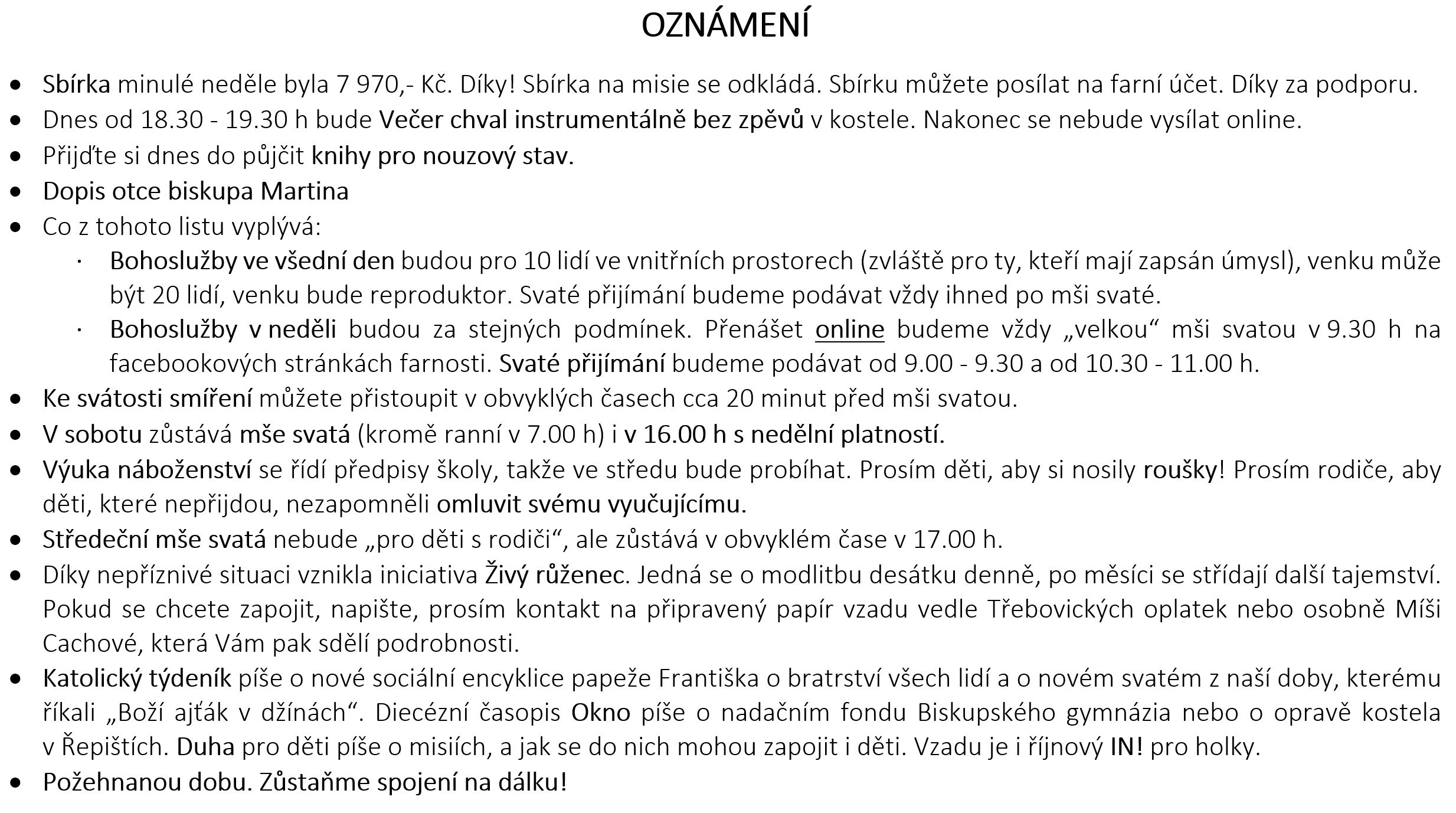 Ohlášky k 11. říjnu V neděli 11. října slavíme 28. NEDĚLI V MEZIDOBÍ. Prohlédněte si pořad bohoslužeb a ohlášky. Previous postOhlášky ke 4. říjnu Next postOhlášky k 18. říjnu Komentáře nejsou povoleny.