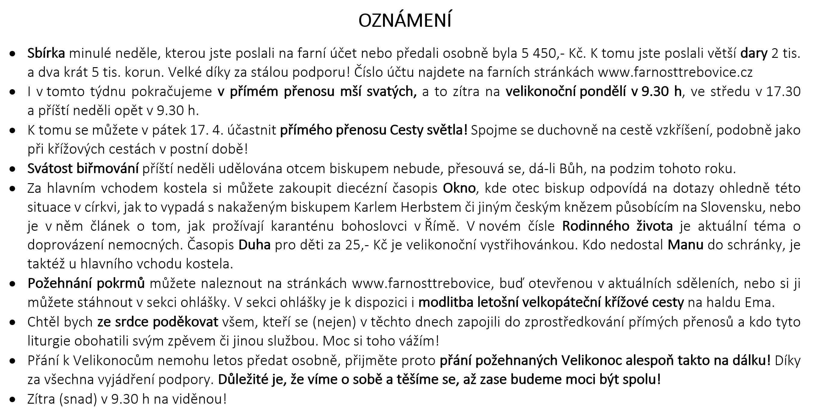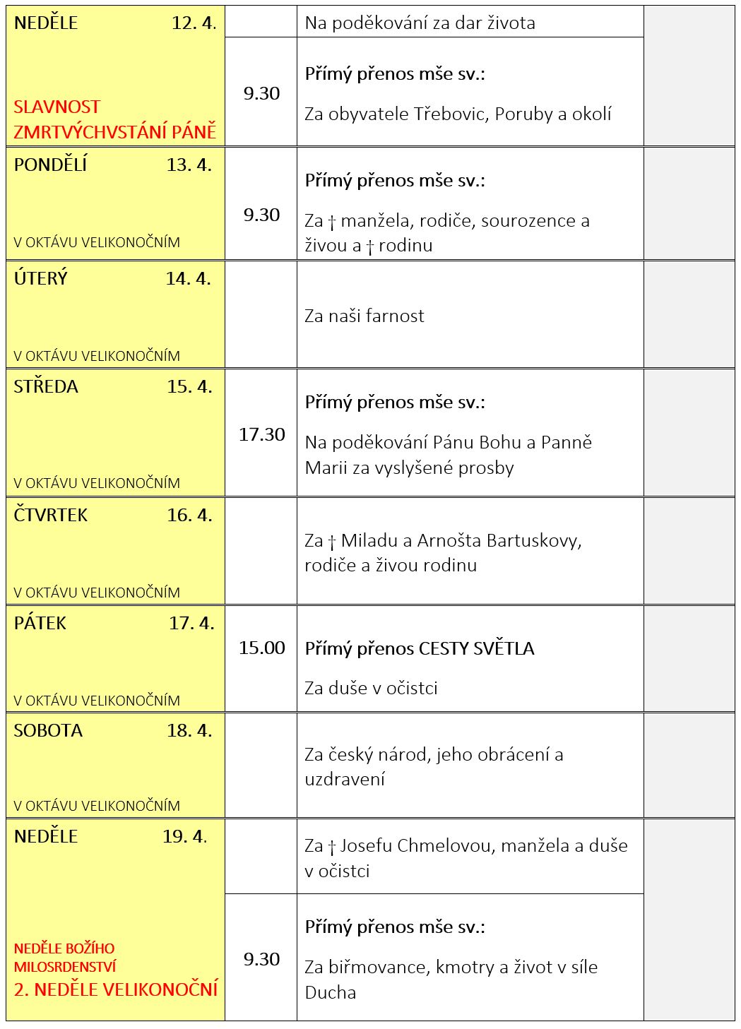 Ohlášky k 12. dubnu V neděli 12. dubna slavíme SLAVNOST ZMRTVÝCHVSTÁNÍ PÁNĚ. Prohlédněte si pořad bohoslužeb a ohlášky. Previous postOhlášky k 5. dubnu Next postOhlášky k 19. dubnu Komentáře nejsou povoleny.