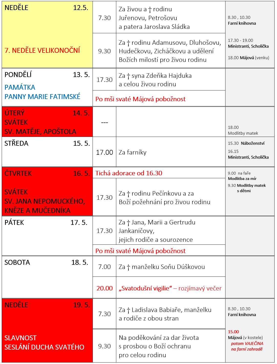 Ohlášky k 12. květnu V neděli 12. května slavíme 7. NEDĚLI VELIKONOČNÍ. Prohlédněte si pořad bohoslužeb a ohlášky: Previous postOhlášky k 5. květnu Next postOhlášky k 19. květnu Komentáře nejsou povoleny.