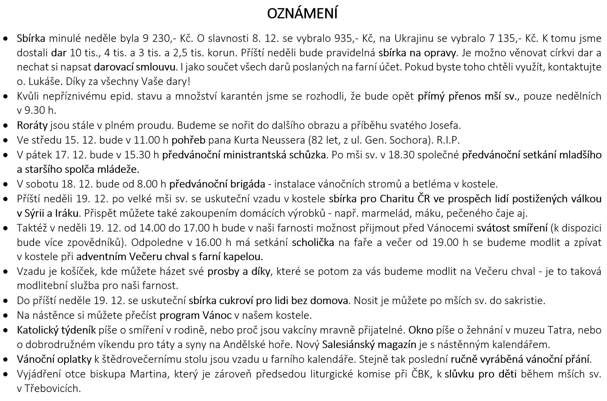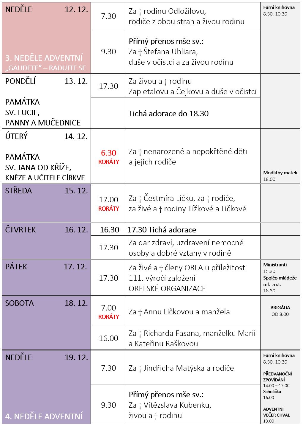 V neděli 12. prosince slavíme 3. NEDĚLI ADVENTNÍ, „GAUDETE“ – RADUJTE SE. Prohlédněte si pořad bohoslužeb a ohlášky.