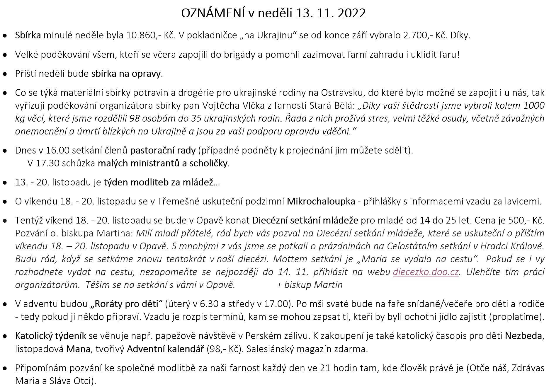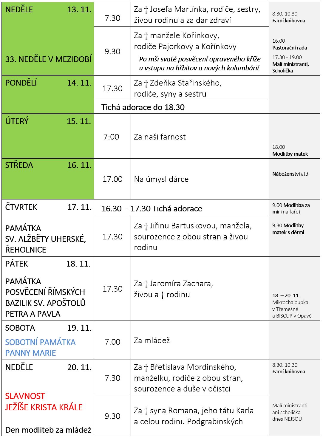 Ohlášky k 13. listopadu V neděli 13. listopadu slavíme 33. NEDĚLI V MEZIDOBÍ. Prohlédněte si pořad bohoslužeb a ohlášky. Previous postOhlášky k 6. listopadu Next postOhlášky k 20. listopadu Komentáře nejsou povoleny.