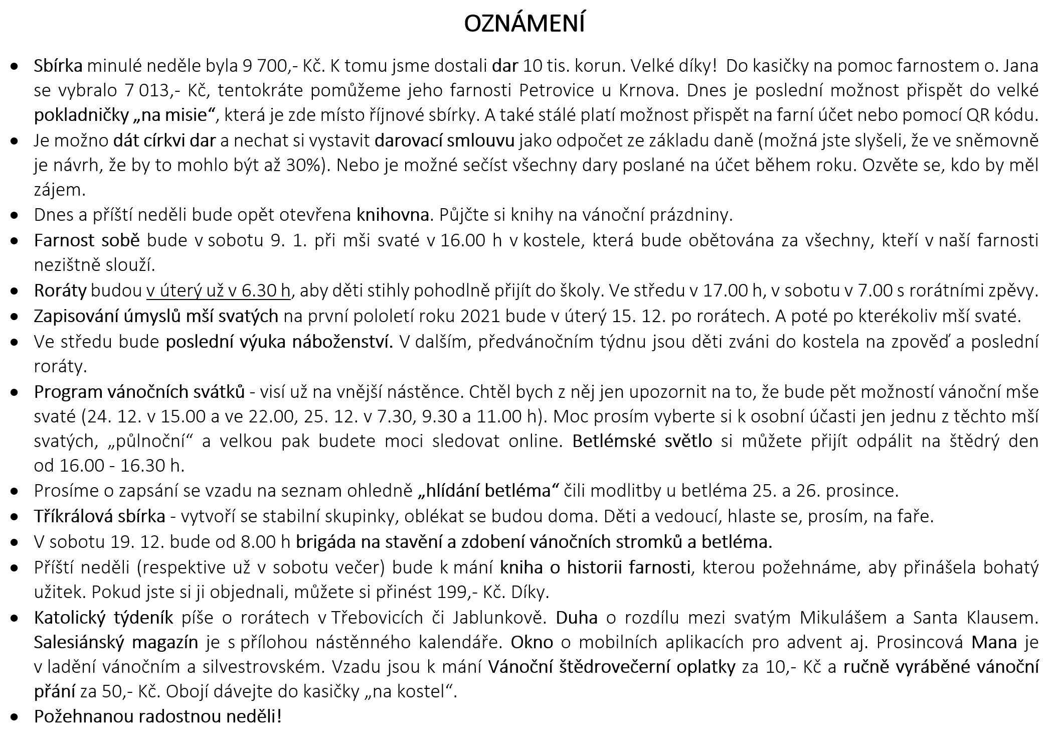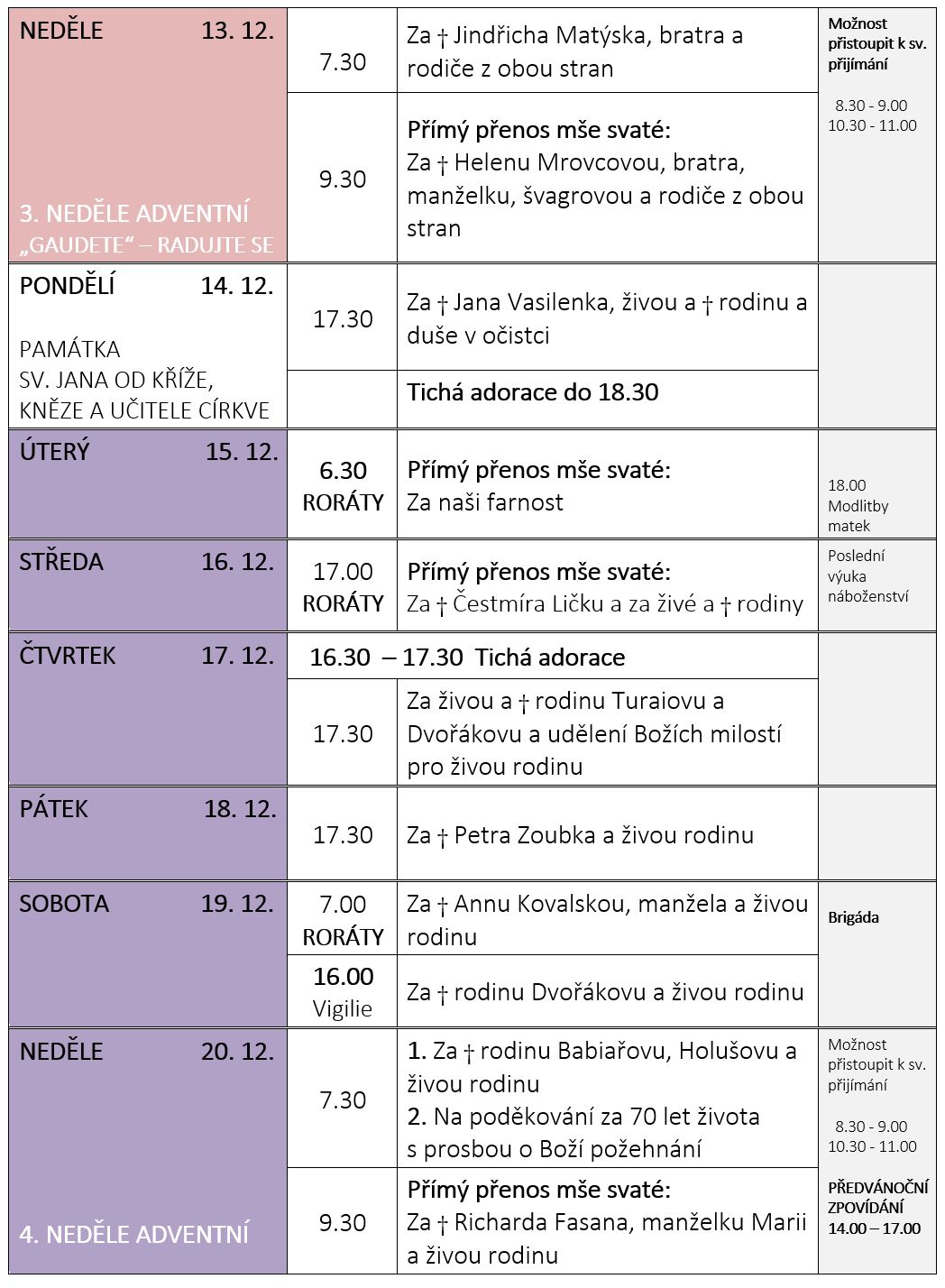 V neděli 13. prosince slavíme 3. NEDĚLI ADVENTNÍ. Prohlédněte si pořad bohoslužeb a ohlášky.