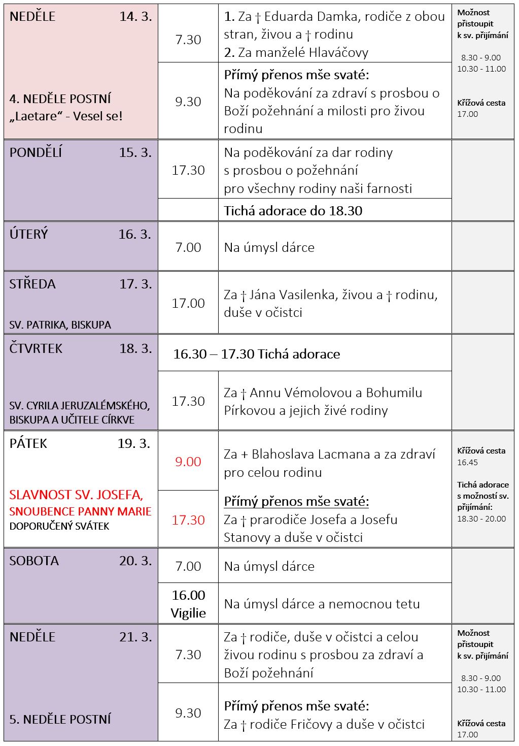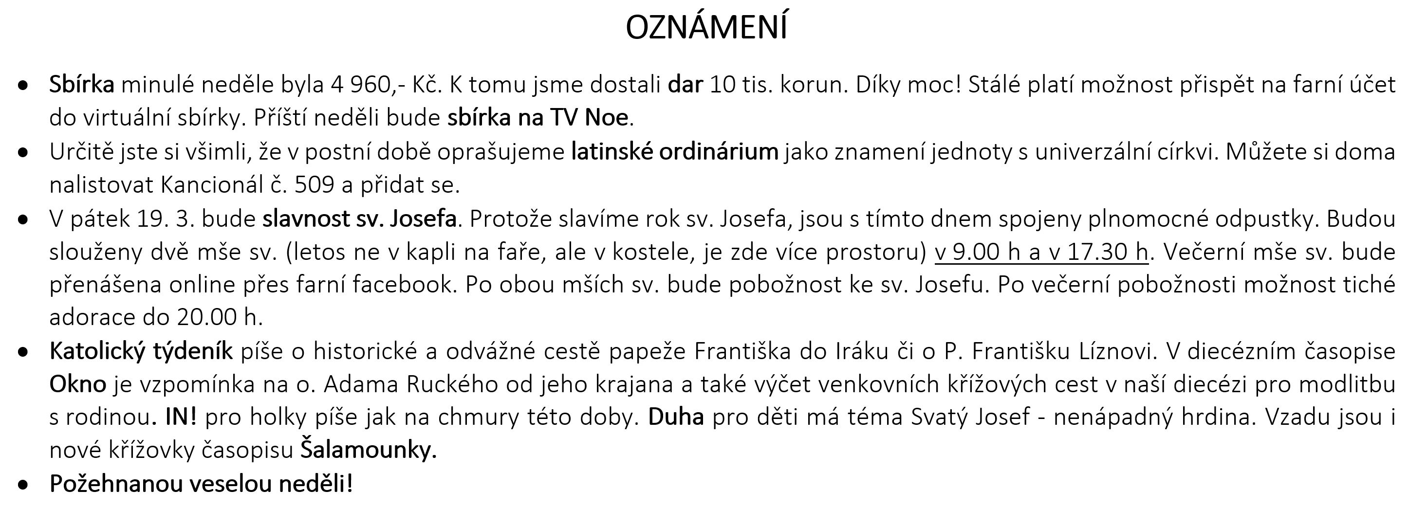 Ohlášky k 14. březnu
