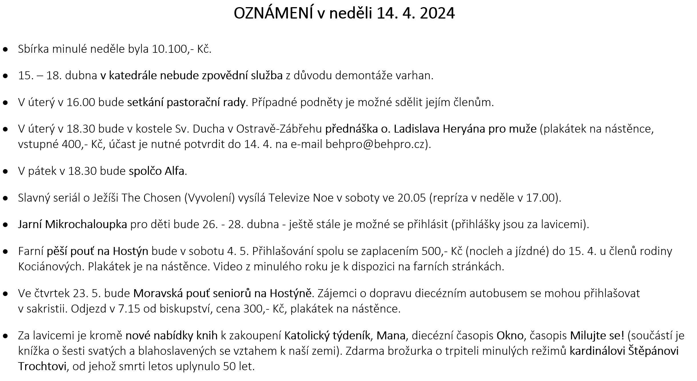 Ohlášky k 14. dubnu V neděli 14. dubna slavíme 3. NEDĚLI VELIKONOČNÍ. Prohlédněte si pořad bohoslužeb a ohlášky: Previous postOhlášky k 7. dubnu Next postOhlášky k 21. dubnu Komentáře nejsou povoleny.