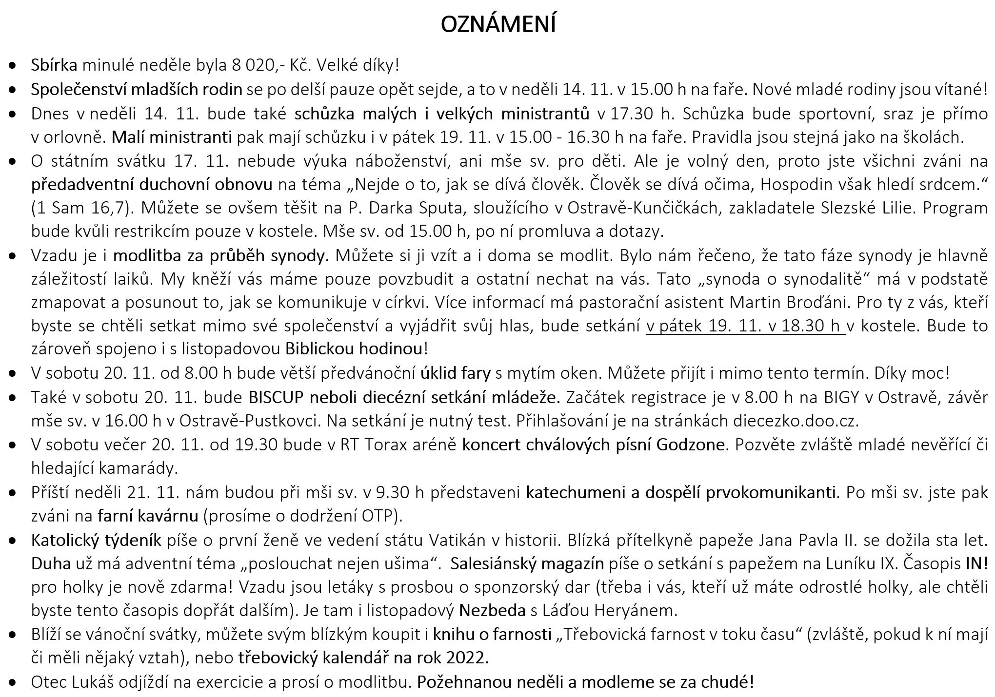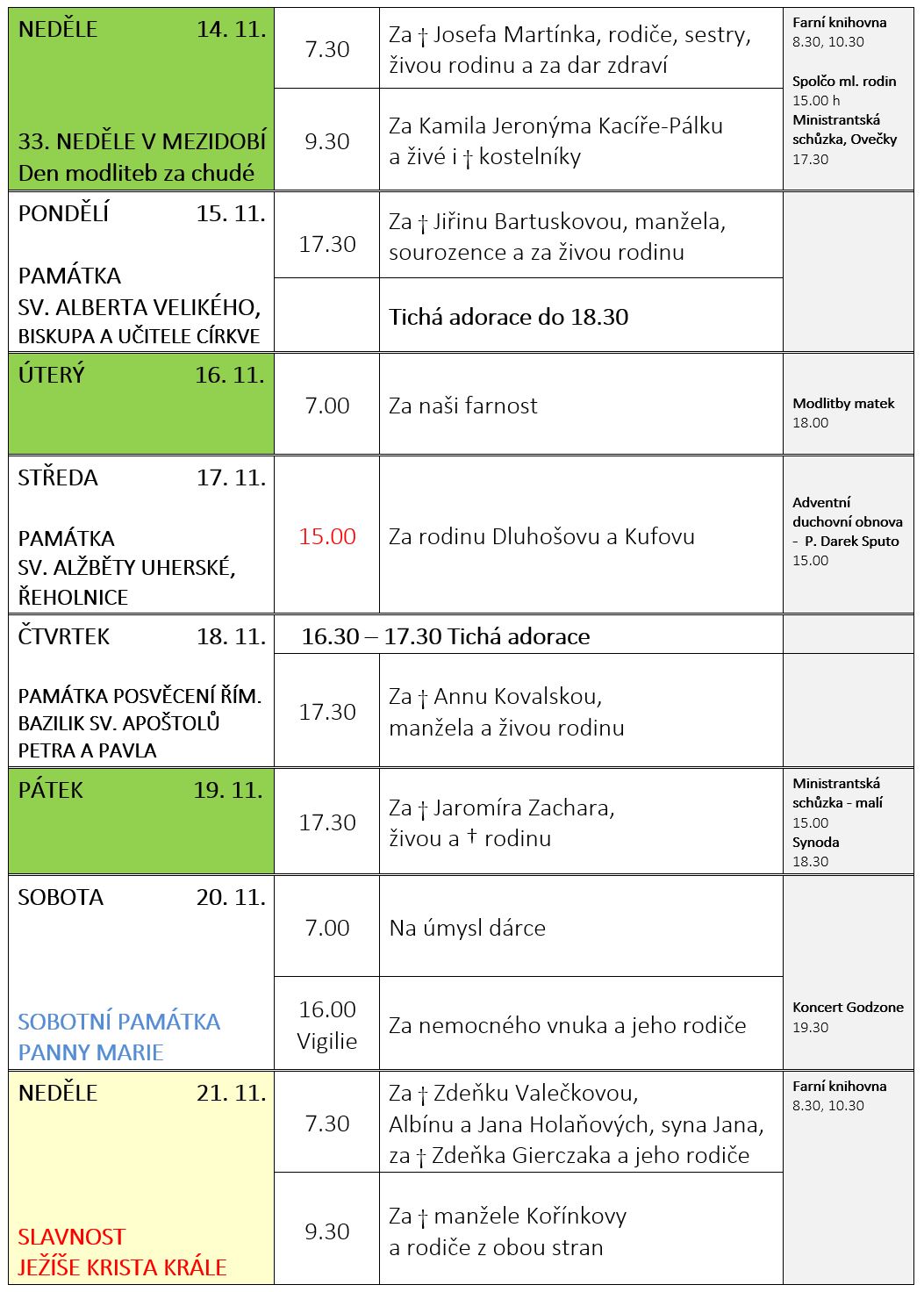 V neděli 14. listopadu slavíme 33. NEDĚLI V MEZIDOBÍ a DEN MODLITEB ZA CHUDÉ. Prohlédněte si pořad bohoslužeb a ohlášky.