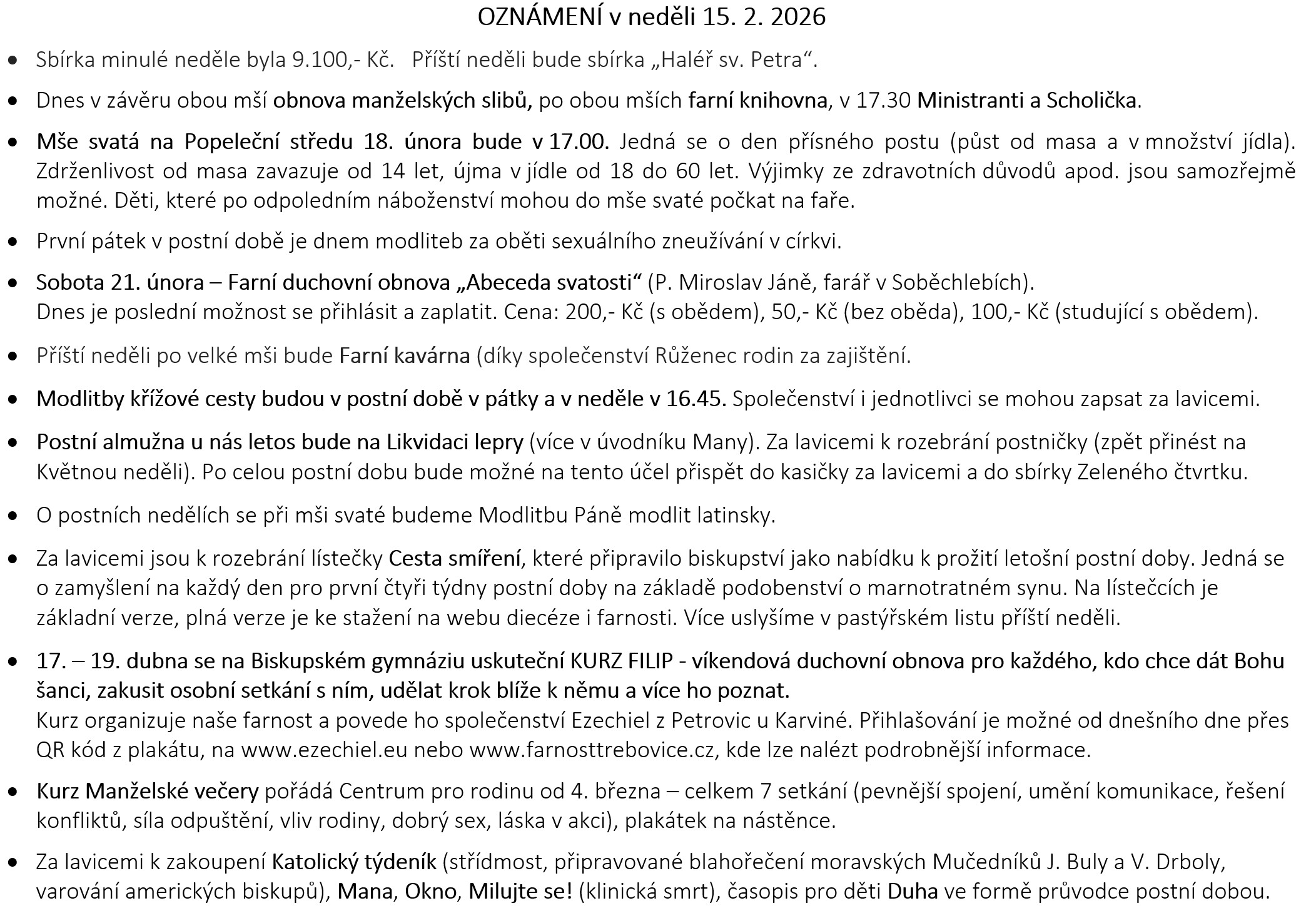 Ohlášky k 15. únoru V neděli 15. února slavíme 6. NEDĚLI V MEZIDOBÍ. Prohlédněte si pořad bohoslužeb a ohlášky: Previous postOhlášky k 8. únoru Next postOhlášky k 22. únoru Komentáře nejsou povoleny.