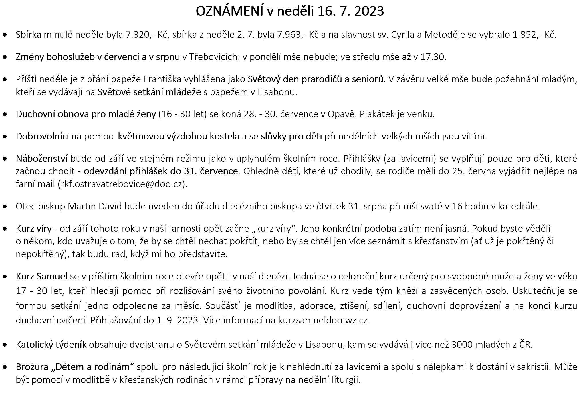 Ohlášky k 16. červenci V neděli 16. července slavíme 15. NEDĚLI V MEZIDOBÍ. Prohlédněte si pořad bohoslužeb a ohlášky. Previous postOhlášky k 9. červenci Next postOhlášky k 23. červenci Komentáře nejsou povoleny.