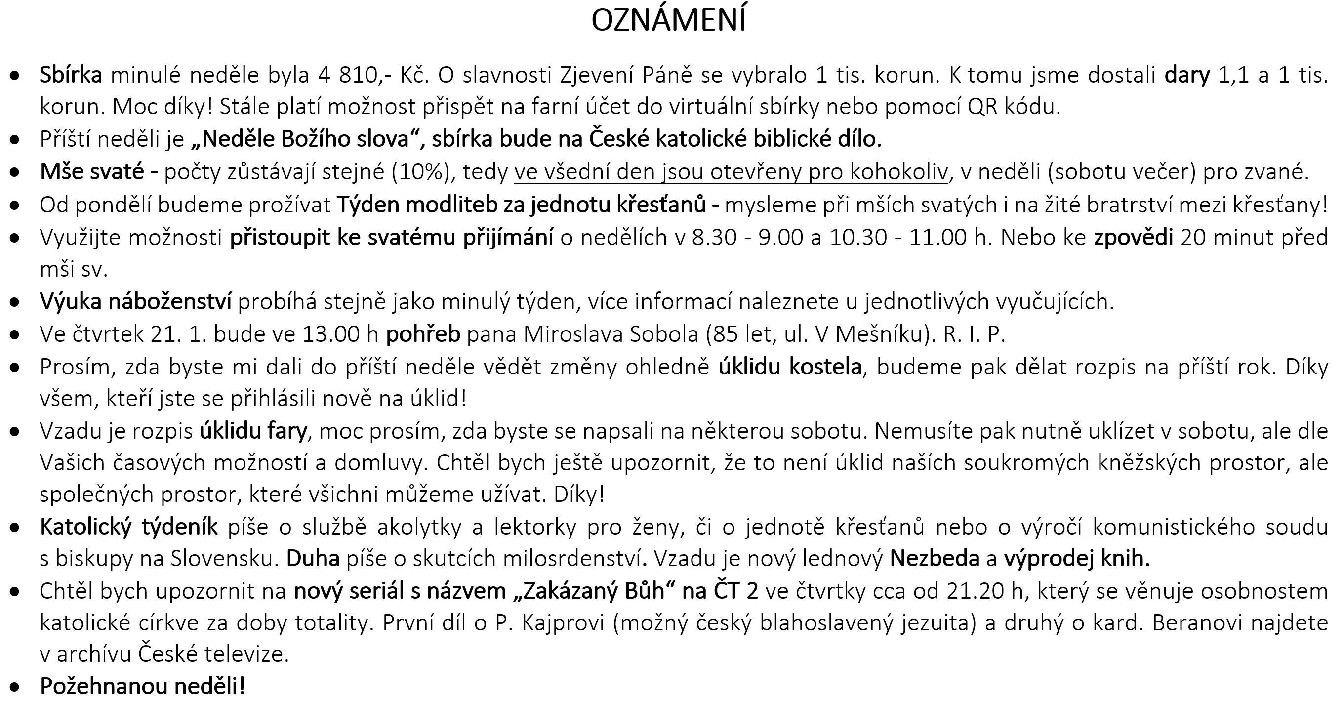 Ohlášky k 17. lednu V neděli 17. ledna slavíme 2. NEDĚLI V MEZIDOBÍ. Prohlédněte si pořad bohoslužeb a ohlášky. Previous postOhlášky k 10. lednu Next postOhlášky k 24. lednu Komentáře nejsou povoleny.