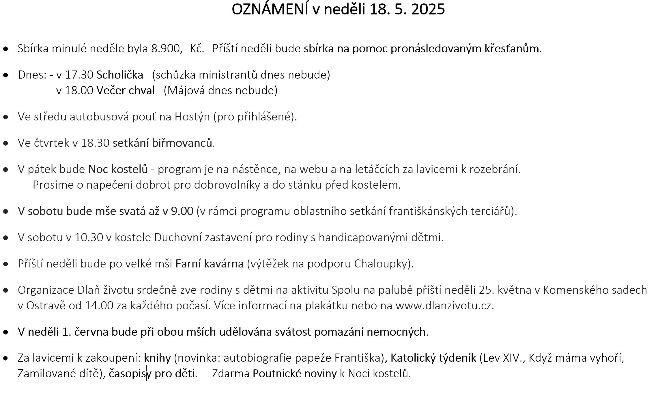 Ohlášky k 18. květnu V neděli 18. května slavíme 5. NEDĚLI VELIKONOČNÍ. Prohlédněte si pořad bohoslužeb a ohlášky: Previous postOhlášky k 11. květnu Next postOhlášky k 25. květnu Komentáře nejsou povoleny.