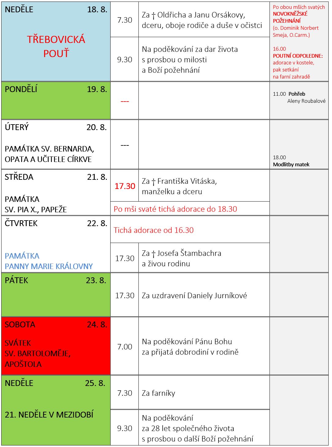 Ohlášky k 18. srpnu V neděli 18. srpna slavíme TŘEBOVICKOU POUŤ. Prohlédněte si pořad bohoslužeb a ohlášky: Previous postOhlášky k 11. srpnu Next postOhlášky k 25. srpnu Komentáře nejsou povoleny.