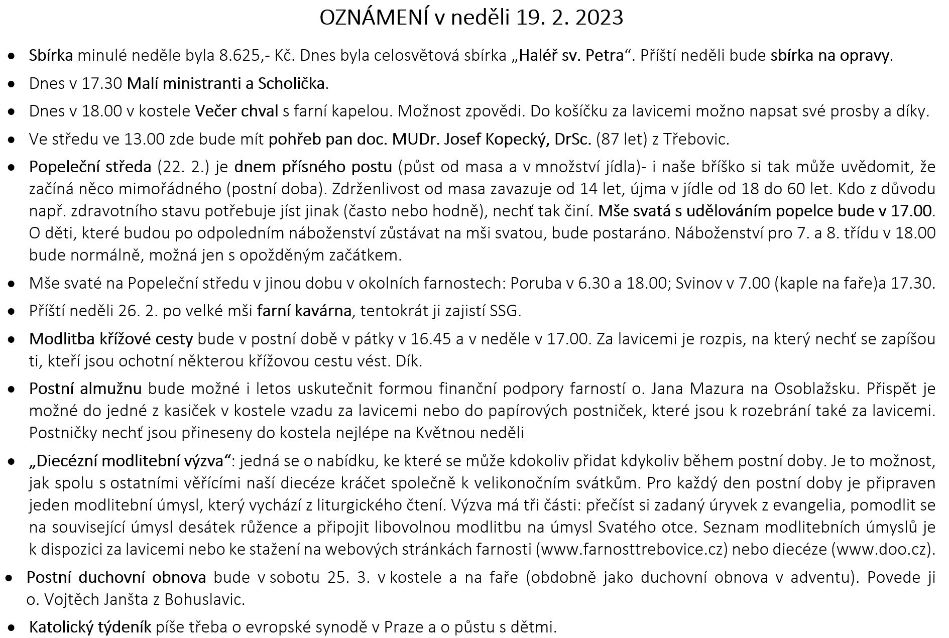 Ohlášky k 19. únoru V neděli 19. února slavíme 7. NEDĚLI V MEZIDOBÍ. Prohlédněte si pořad bohoslužeb a ohlášky. Previous postOhlášky k 12. únoru Next postOhlášky k 26. únoru Komentáře nejsou povoleny.