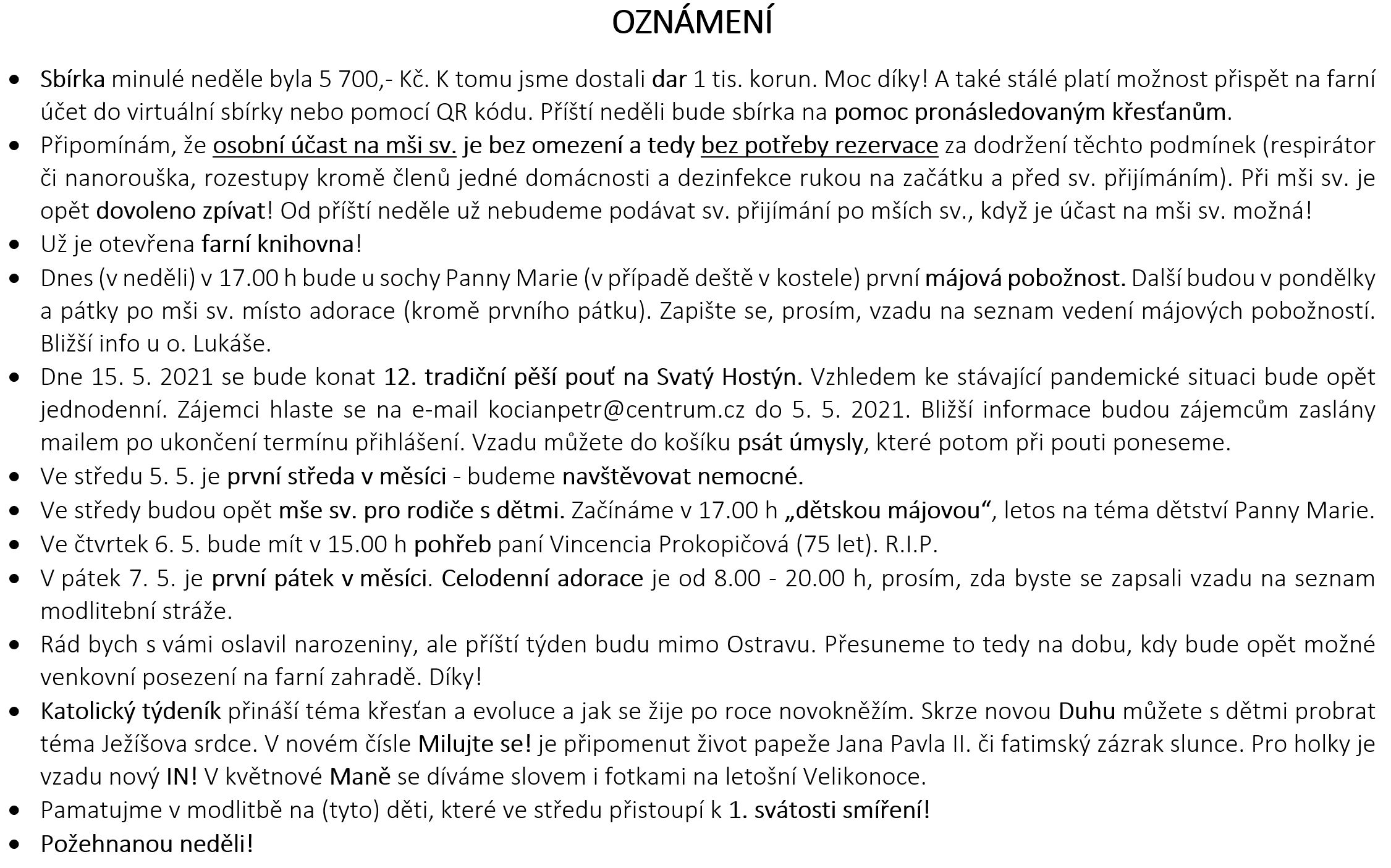Ohlášky k 2. květnu V neděli 2. května slavíme 5. NEDĚLI VELIKONOČNÍ. Prohlédněte si pořad bohoslužeb a ohlášky. Previous postOhlášky k 25. dubnu Next postOhlášky k 9. květnu Komentáře nejsou povoleny.