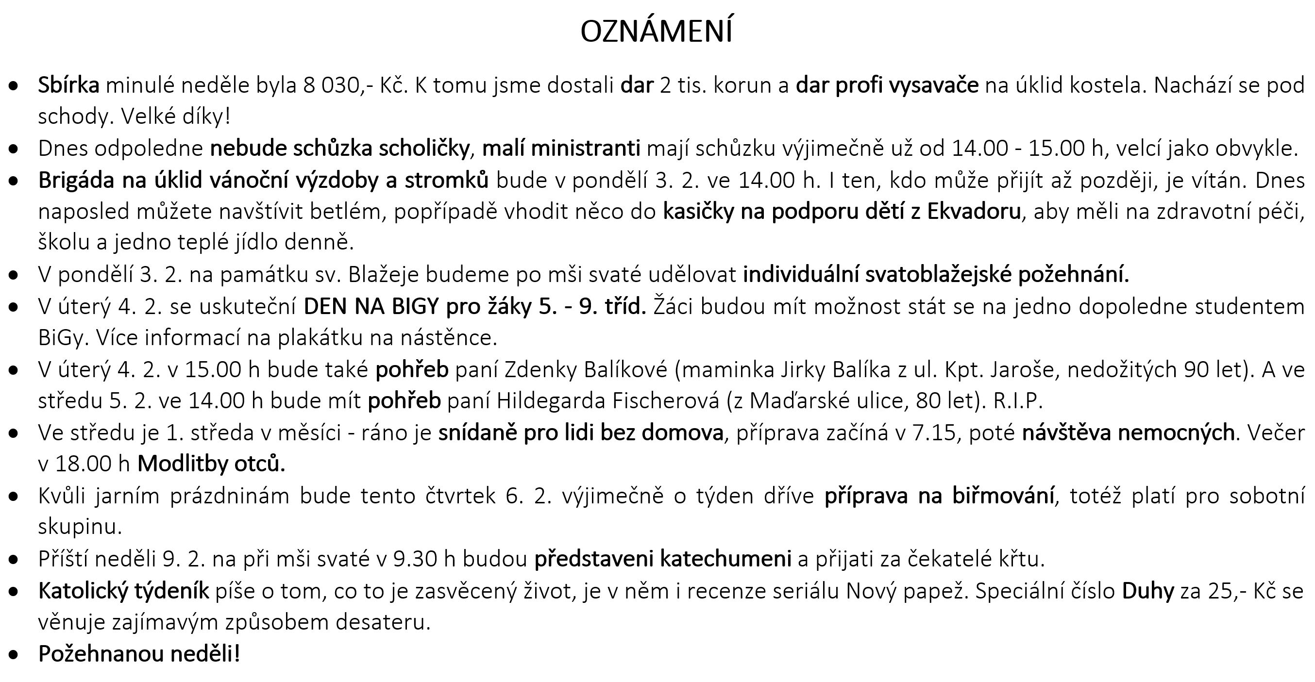 Ohlášky k 2. únoru V neděli 2. února slavíme SVÁTEK UVEDENÍ PÁNĚ DO CHRÁMU – HROMNICE. Prohlédněte si pořad bohoslužeb a ohlášky. Previous postOhlášky k 26. lednu Next postOhlášky k 9. únoru Komentáře nejsou povoleny.