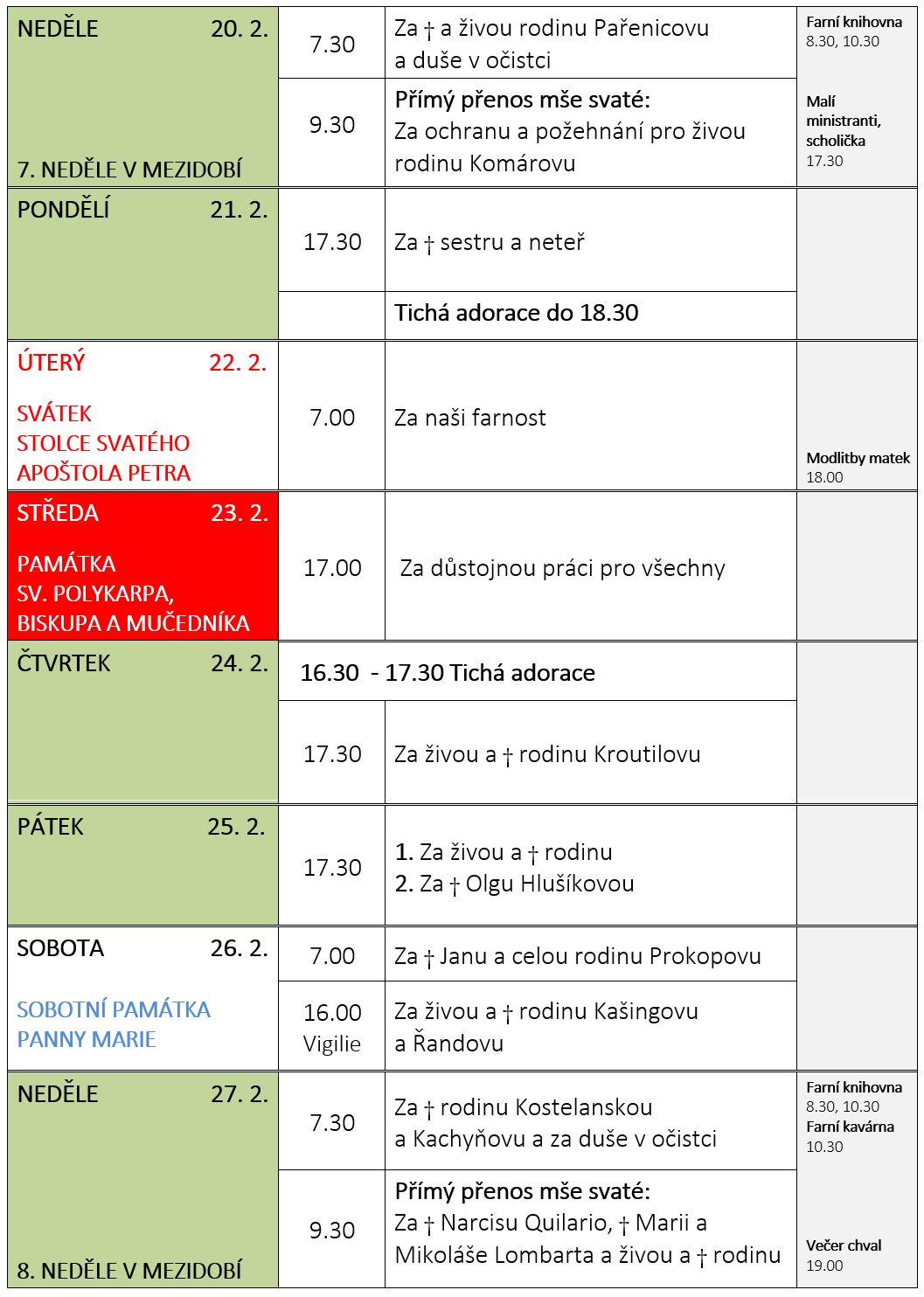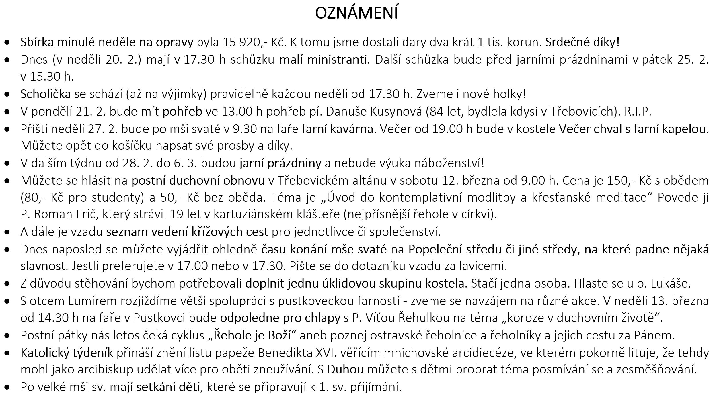 Ohlášky k 20. únoru